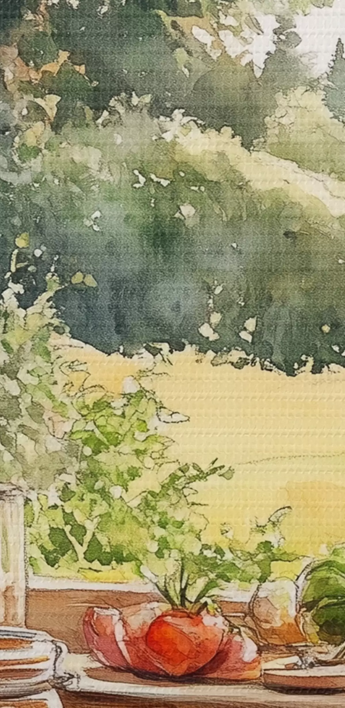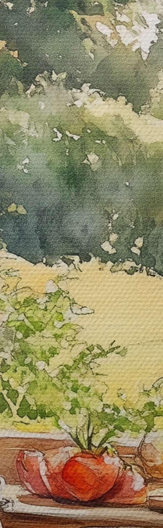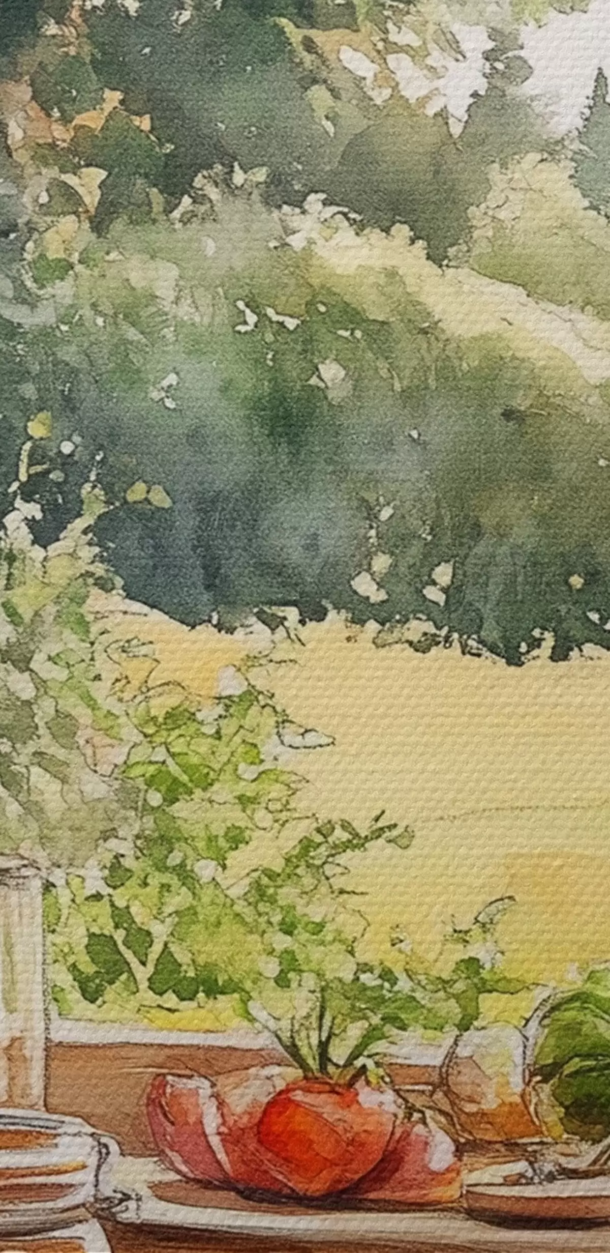 Kép Falusi esztétika, faház, nyári természet, zöldségek, akvarell stílusban Nr r43185