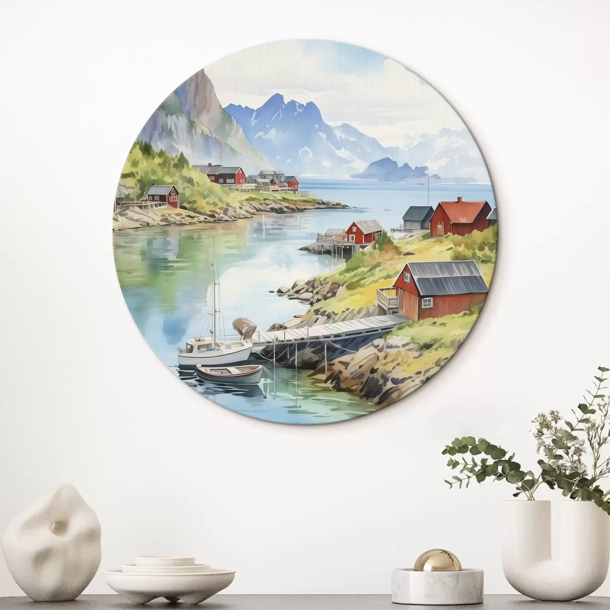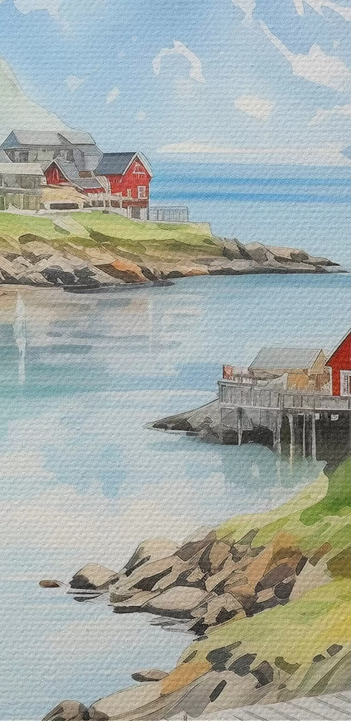 Kép Lofoten-szigetek nyári táj, piros házak, hegyek, hajók Nr r43187