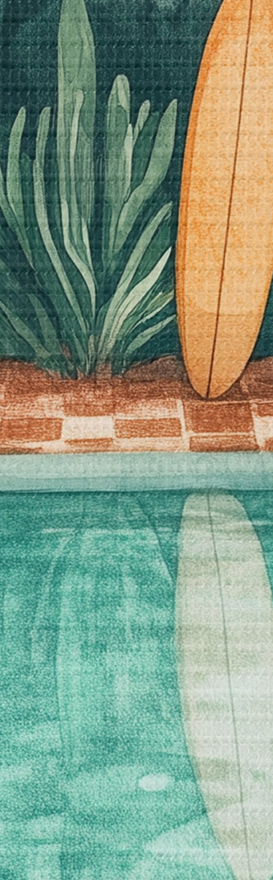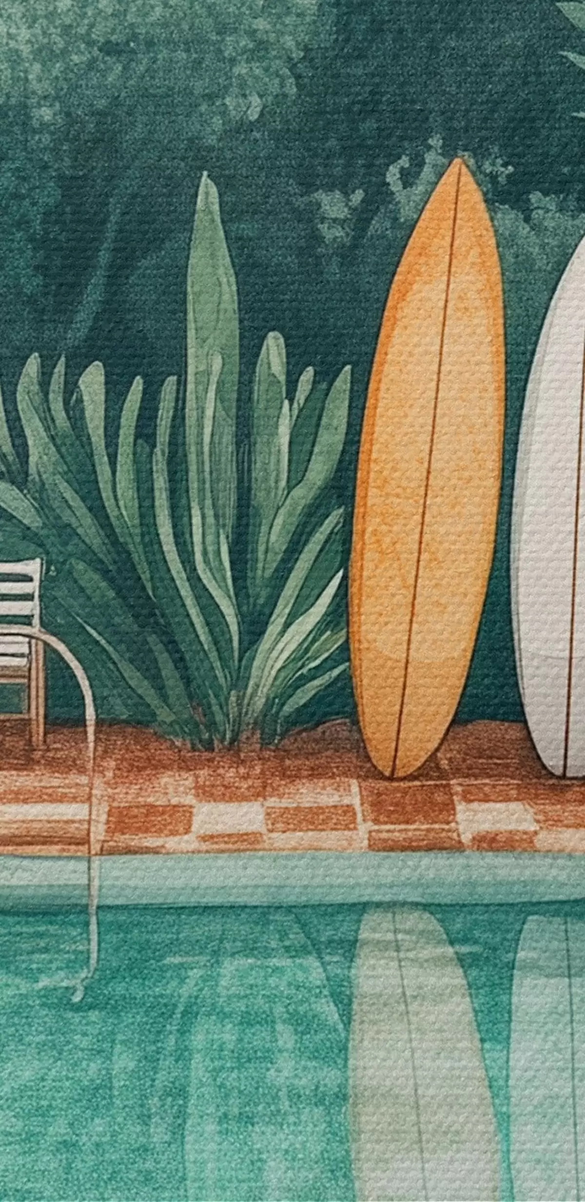 Kép Vintage nyári medence, trópusi erdő, zöld, pálmafák, vízfestmény stílusban Nr r43191
