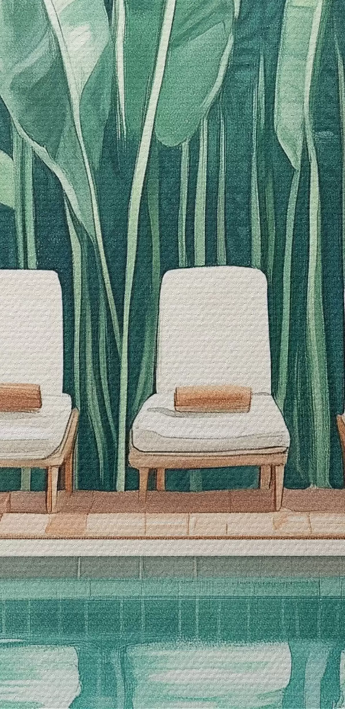 Kép Esztétikus nyári medence a trópusi kertben, akvarell stílusban Nr r43192