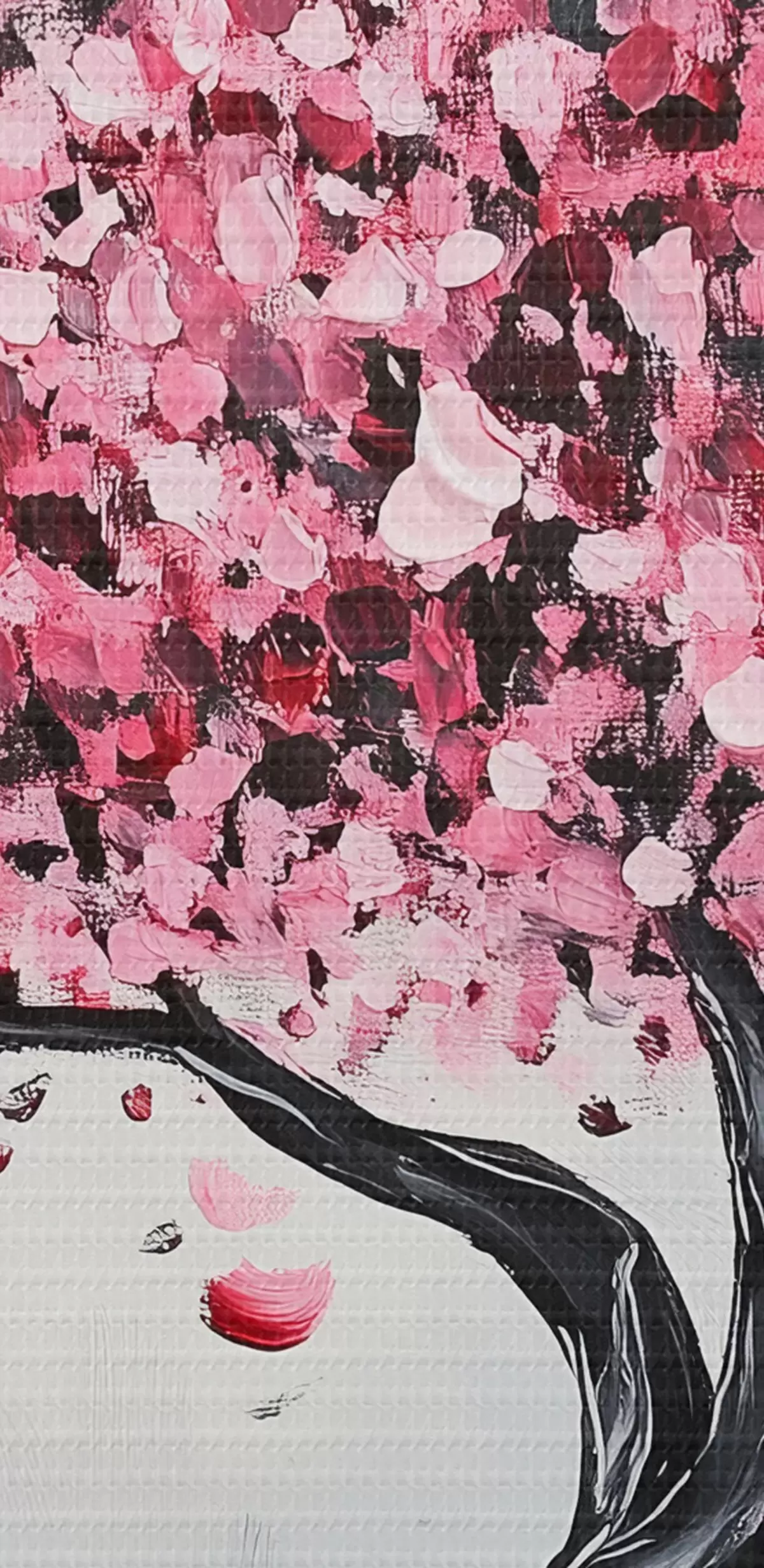 Kerek festmények Rózsaszín virágzó fa szürke háttéren r43299
