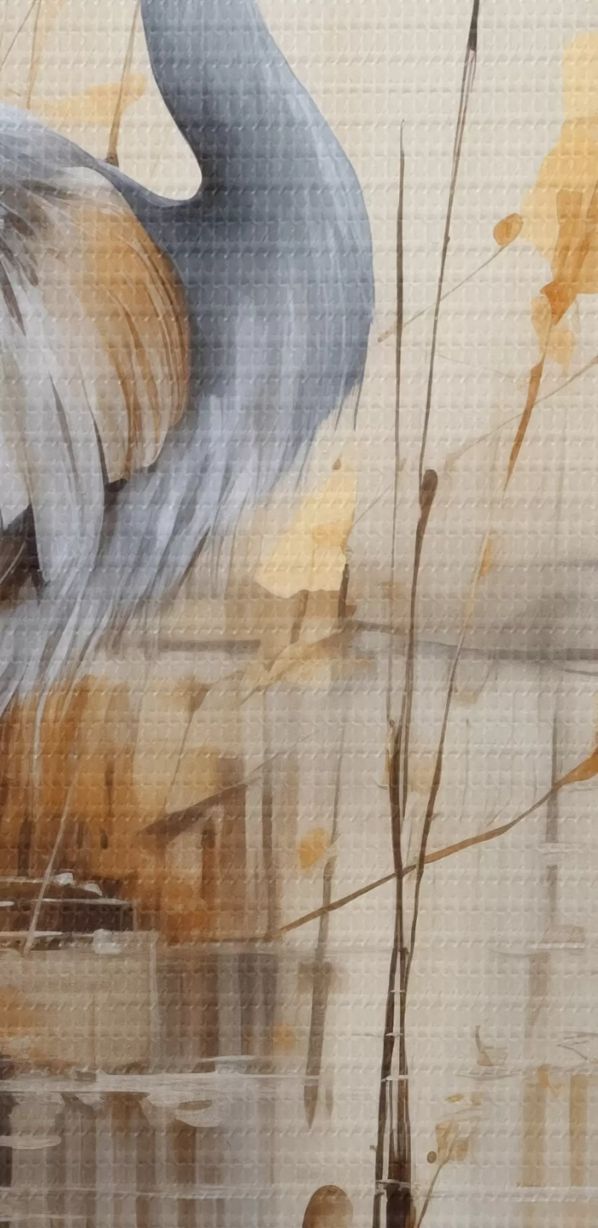 Kép Egy szürke kócsag áll egy tóban , magas, vékony növényekkel körülvéve, a háttér a bézs és a fehér lágy keveréke Nr r43398