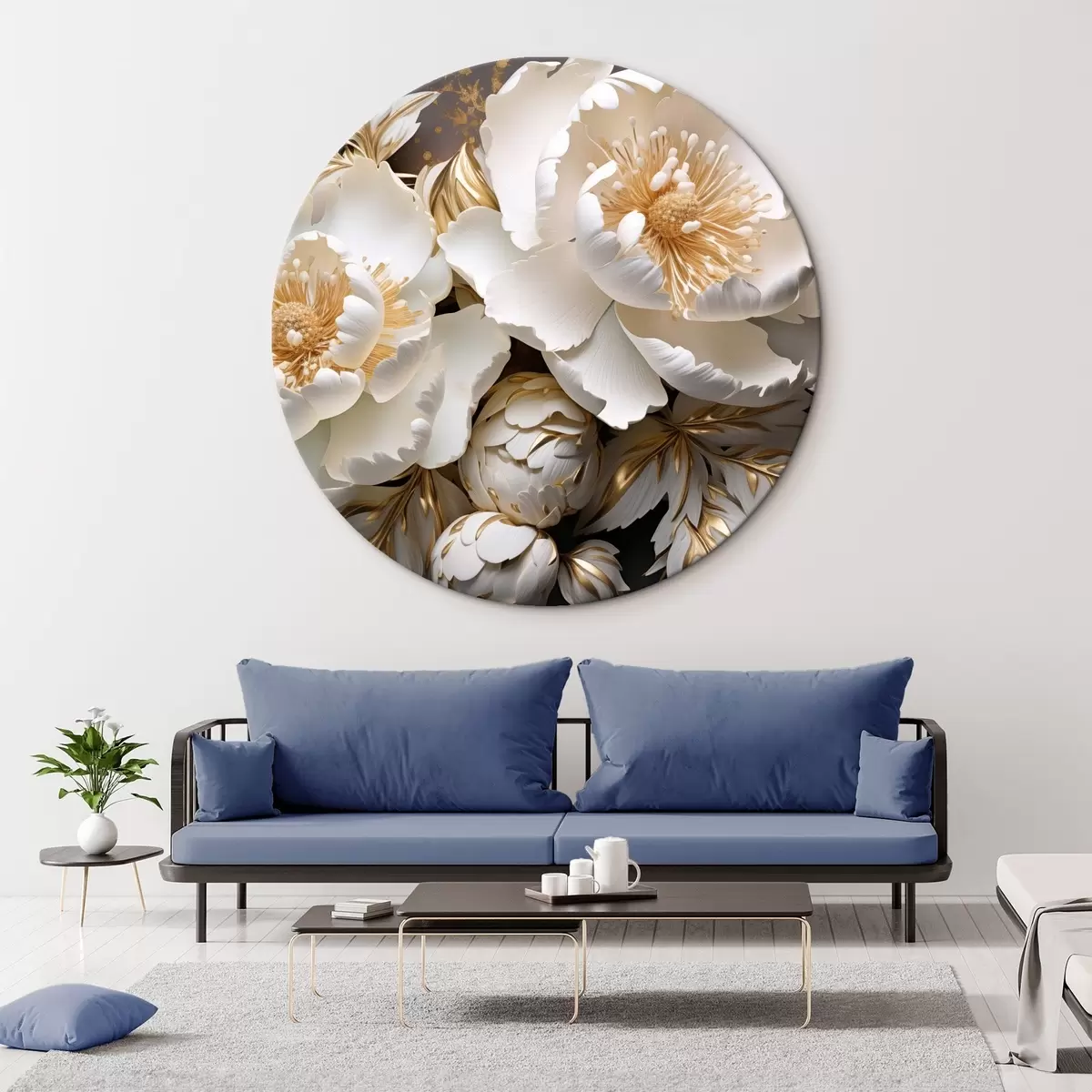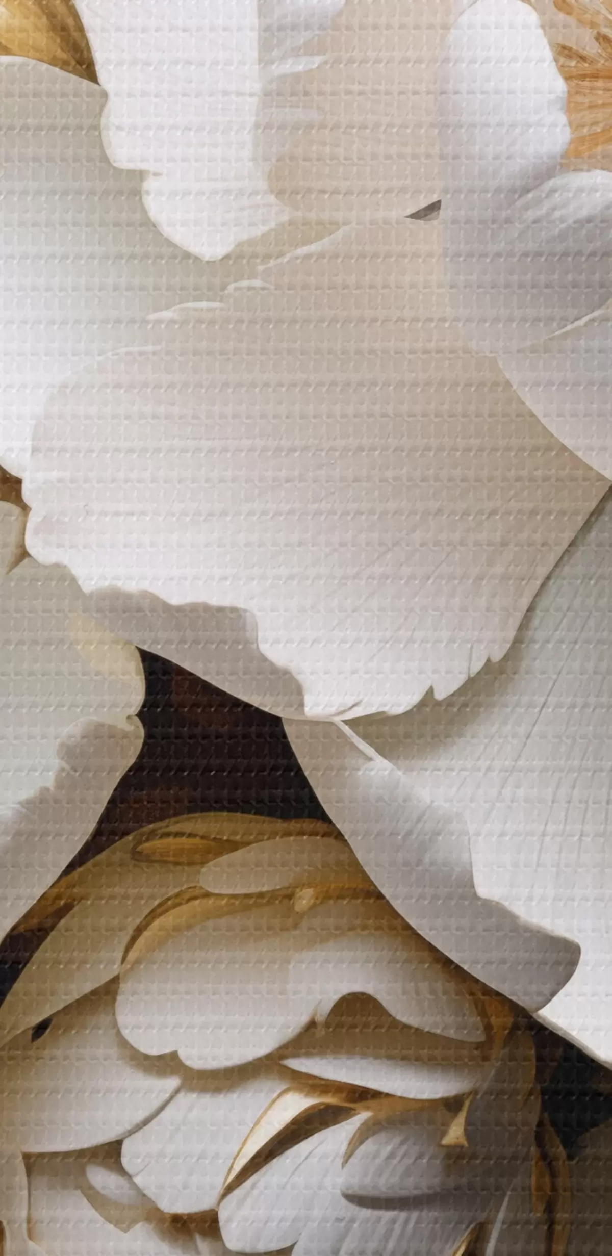 Kép Fehér és sárga bazsarózsa levelekkel, bonyolult részletekkel, dekoratív művészet, sötét háttérrel Nr r43399
