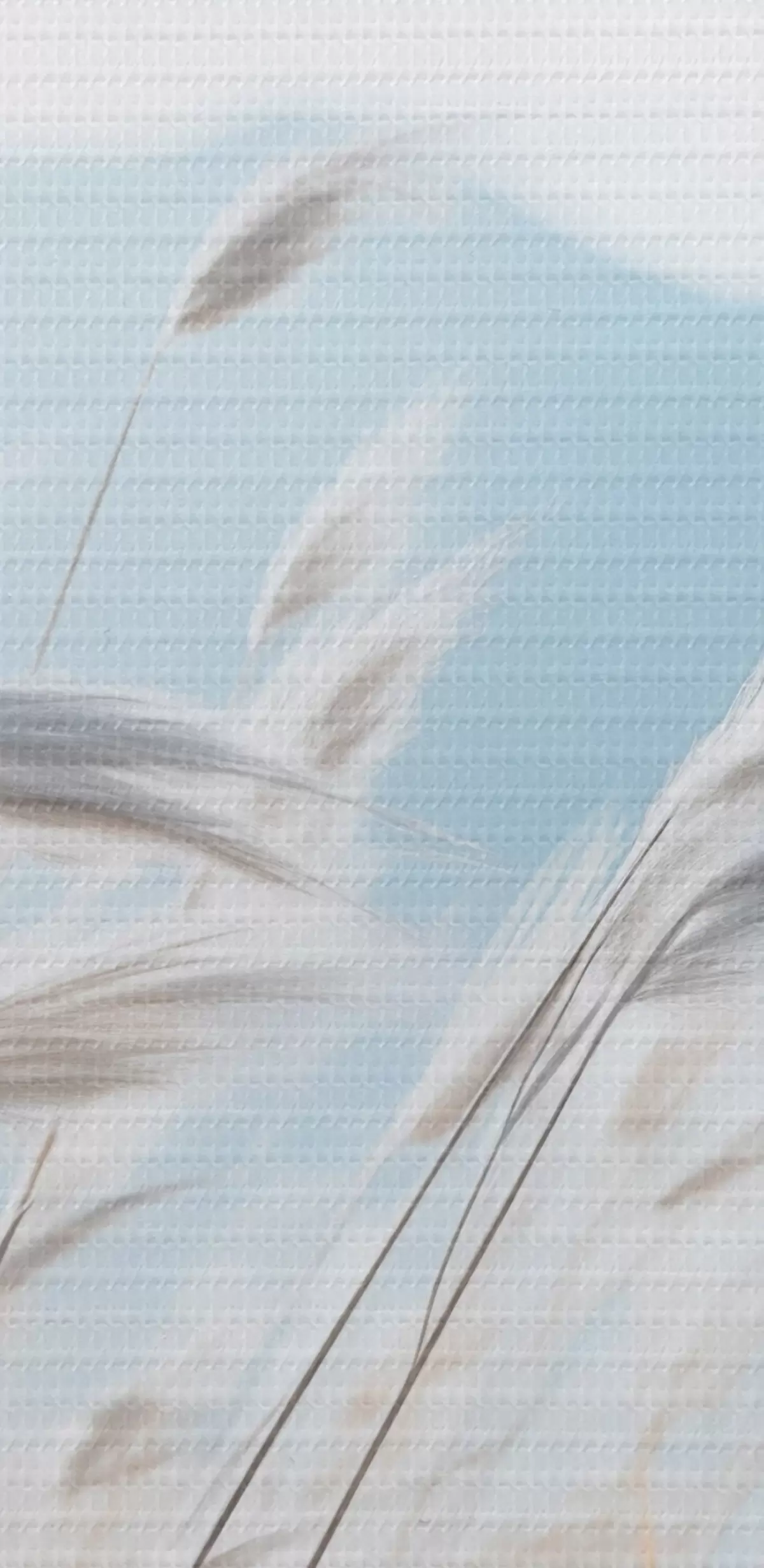 Kép Fű, pampas mező, kék hegy a háttérben, világoskék égbolt, minimalista, pasztell színek Nr r43404