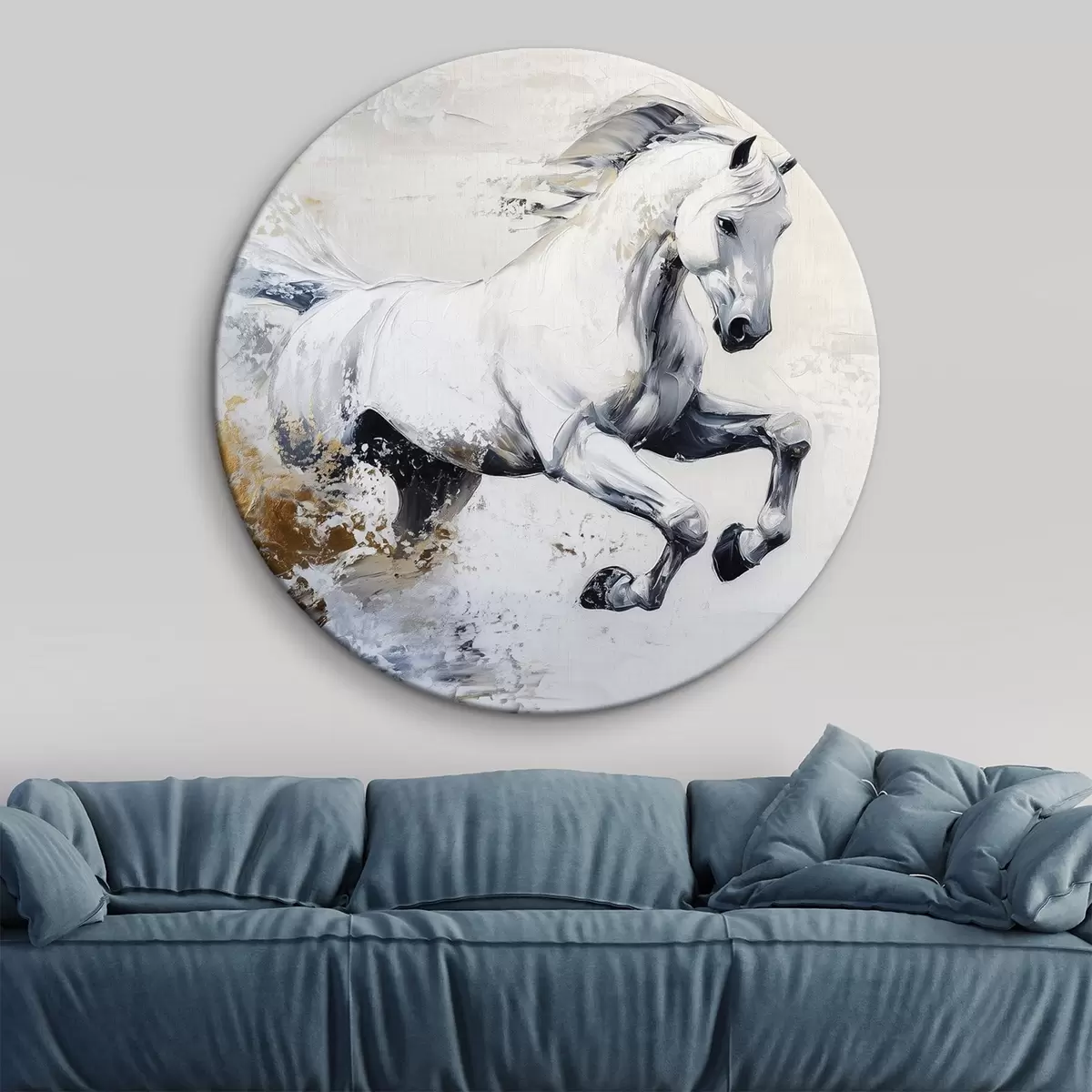 Kép Futó fehér ló, olaj stílusú rajz, állatok Nr r43498