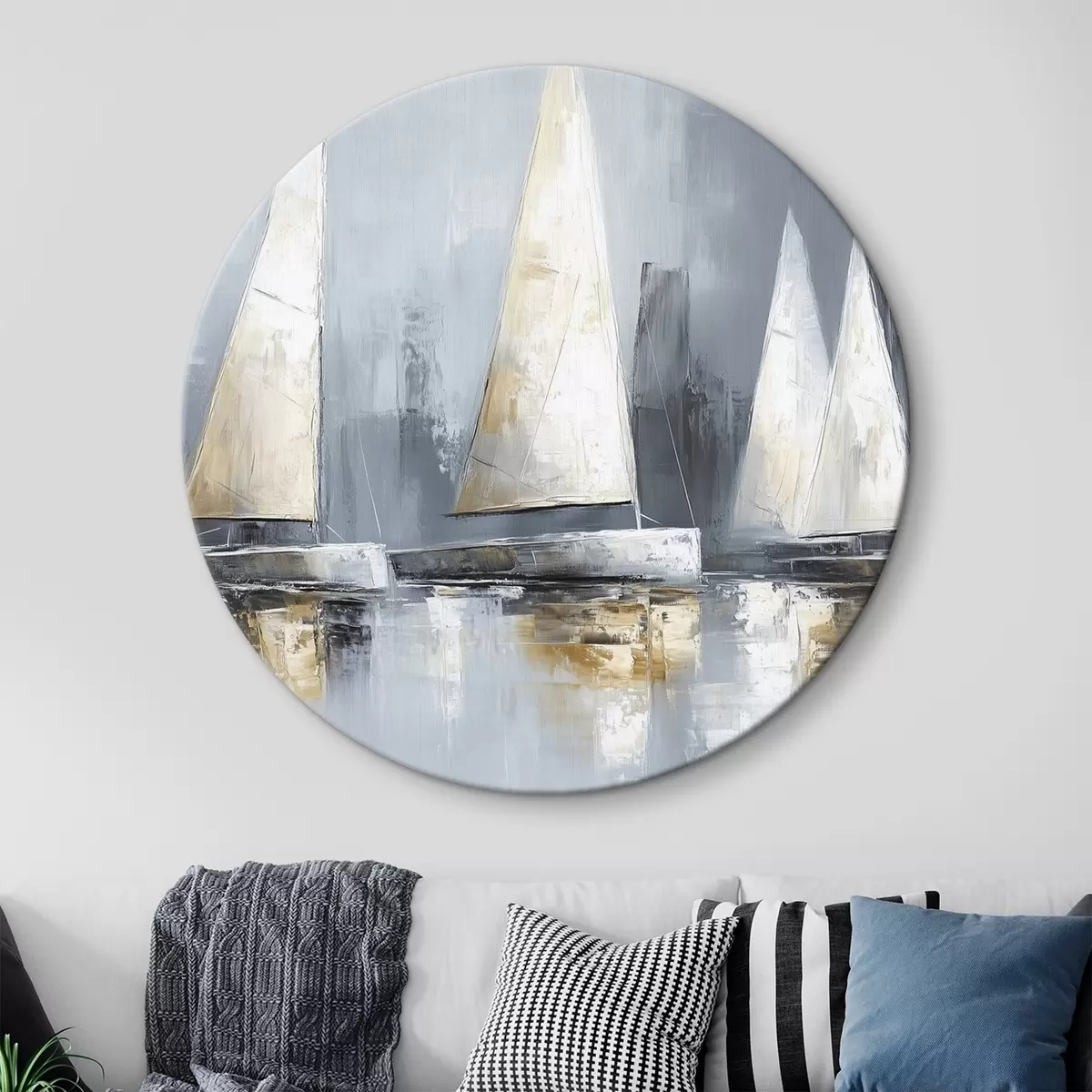 Kép Vitorláshajók tükröződésekkel a vízben, olaj stílusú rajz, szürke színek Nr r43506