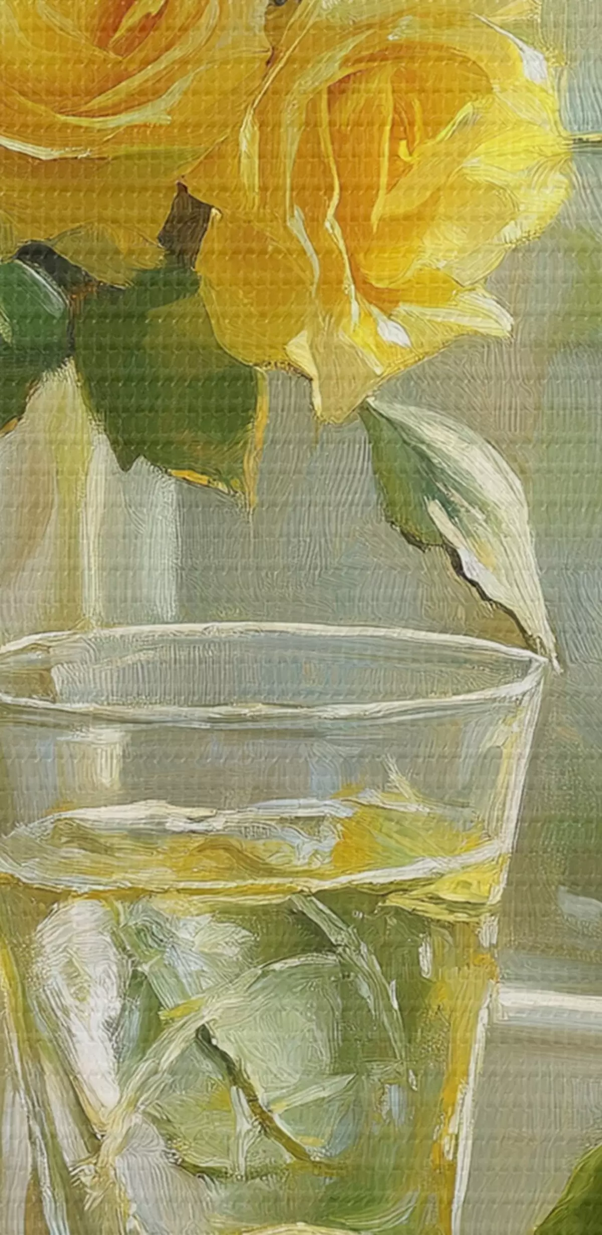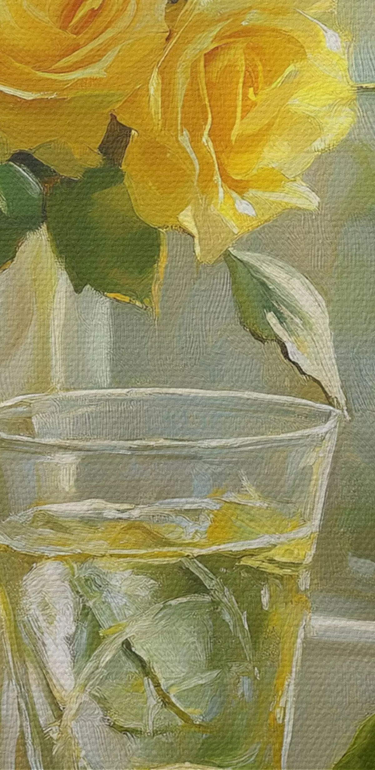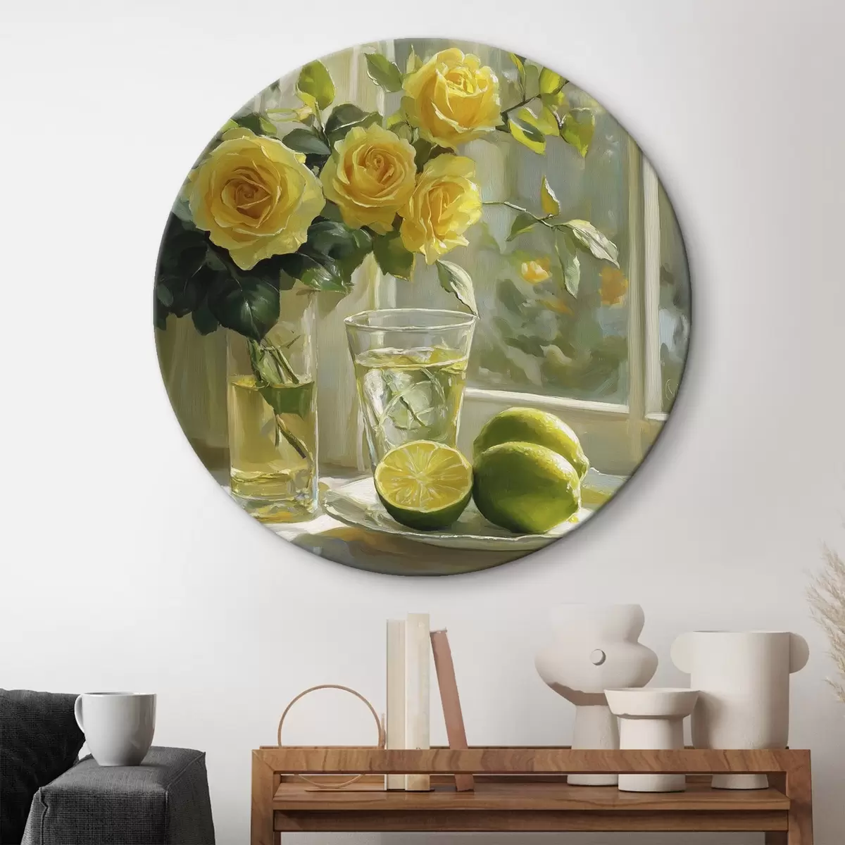 Kép Gyönyörű sárga rózsák az ablak melletti vázában, lime-mal locsolva Nr r43886