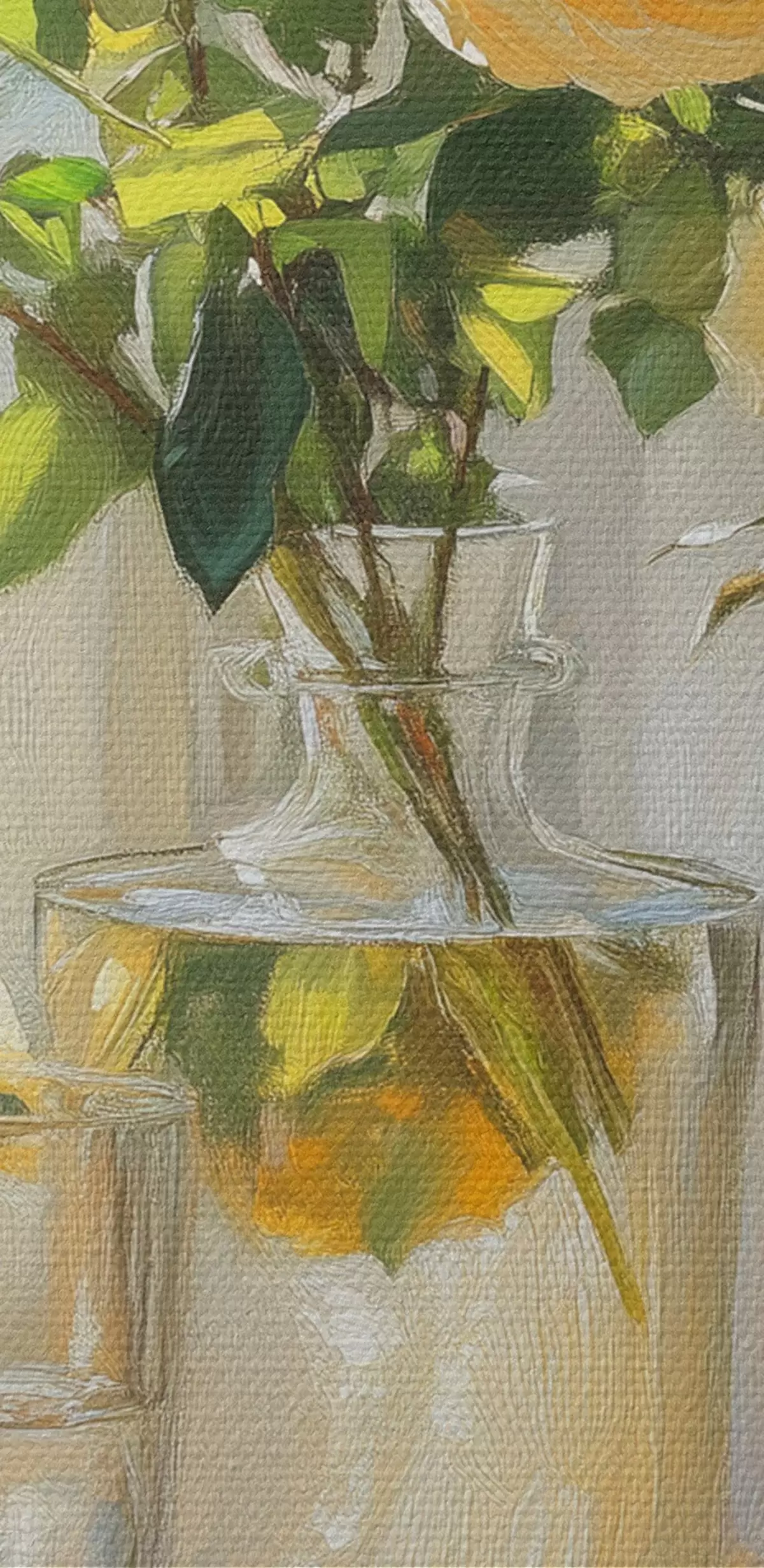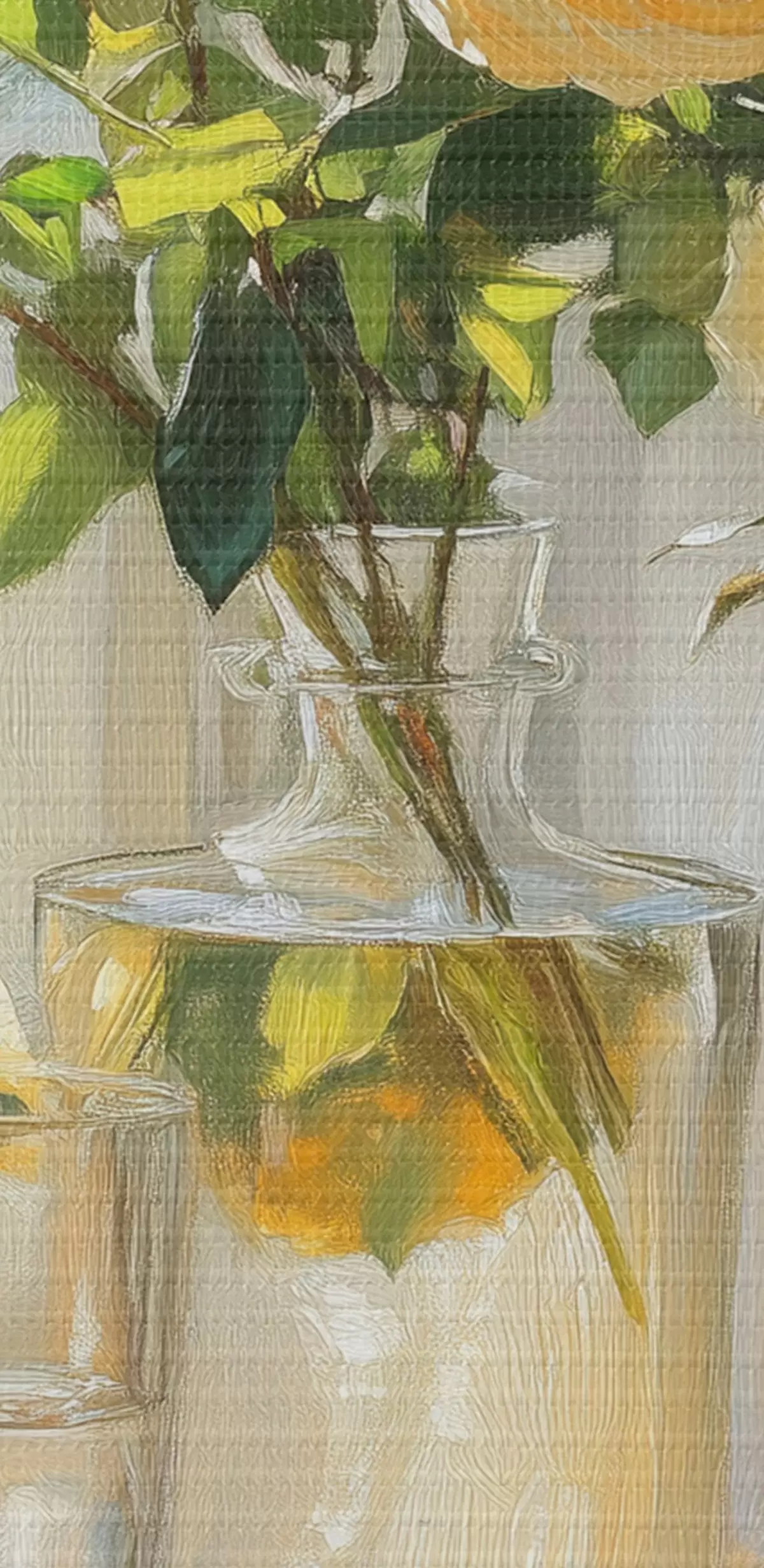 Kép Rózsák vázában, olaj stílusú rajz, szelíd napfény, citrom, tavasz Nr r43887