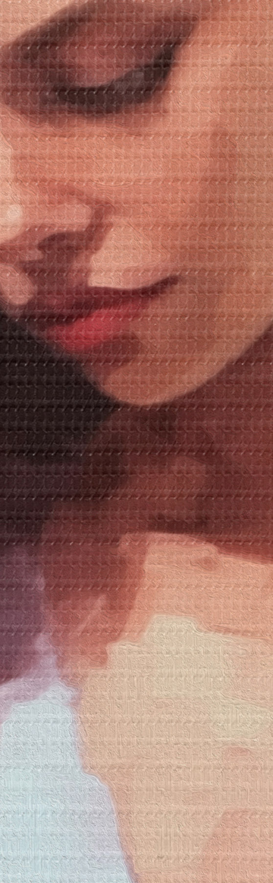 Ahhoz, hogy a vásznat a feszítőrúdra feszítsük anélkül, hogy a kép megsérülne, tükrözött képet használunk.