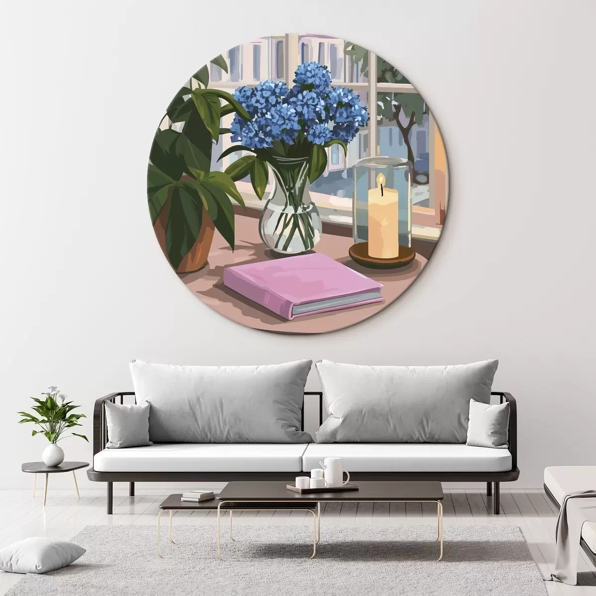 Kép Hortenziák a vázában, ablaknézet, gyertya, hangulatos otthon Nr r44009