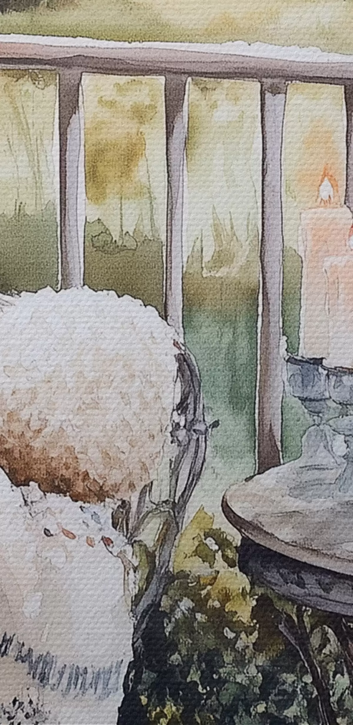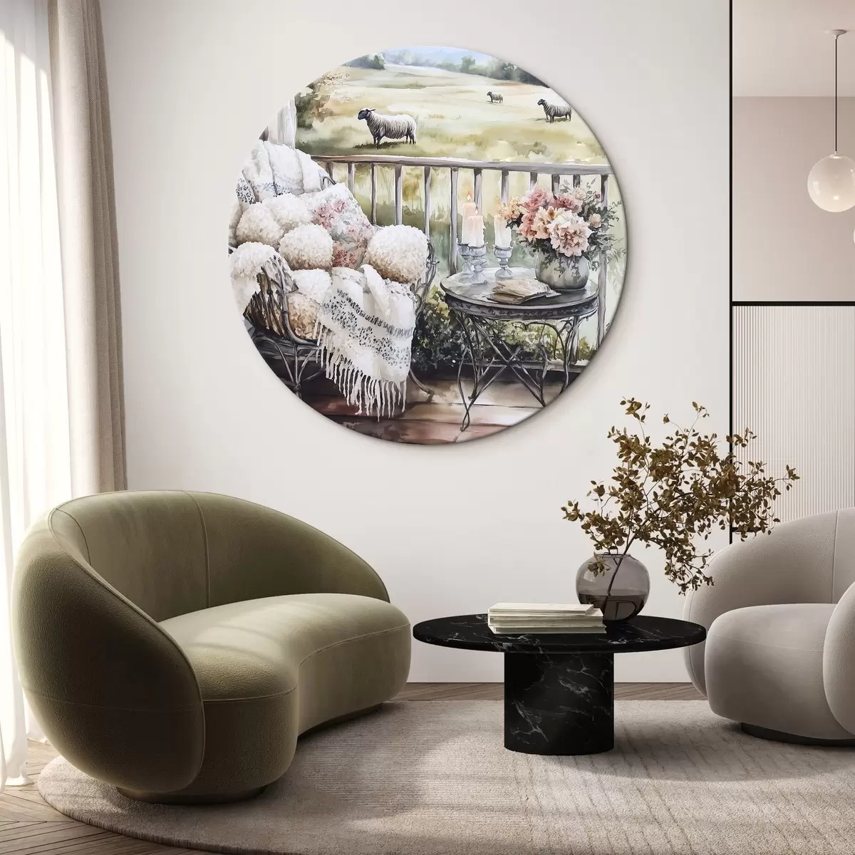 Kép Vidéki tanya birkákkal, mezőkkel, rusztikus virágokkal, akvarell stílusban Nr r44014