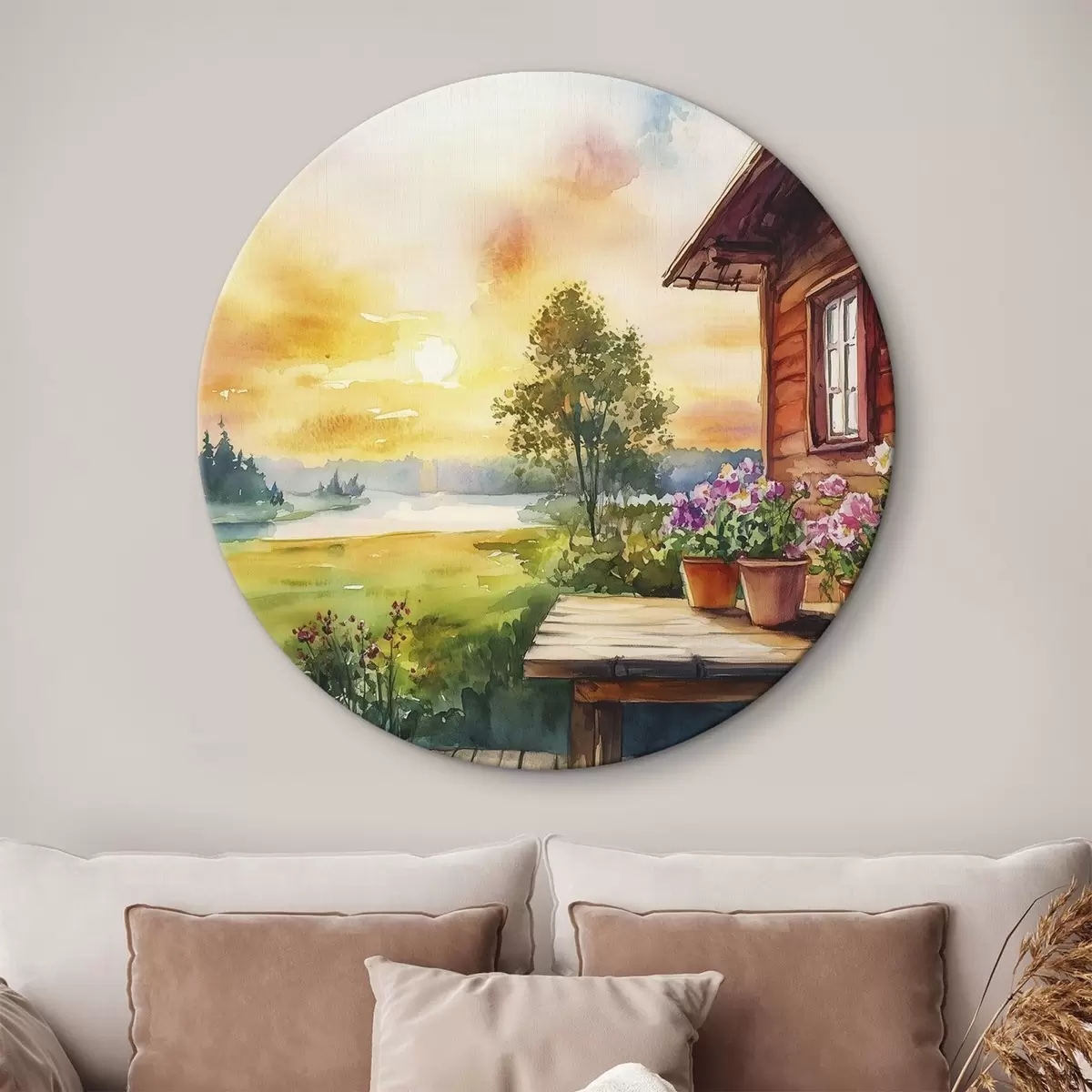 Kép Naplemente színek, parasztház, akvarell stílus, rusztikus, nyári virágok Nr r44017