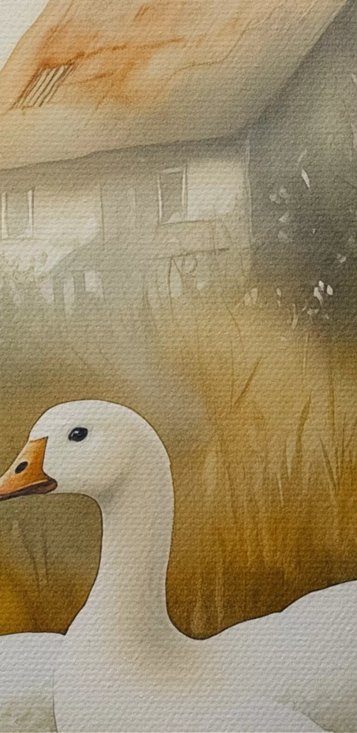 Kép Libák a tóban a parasztház közelében, rusztikus, akvarell stílusban Nr r44022