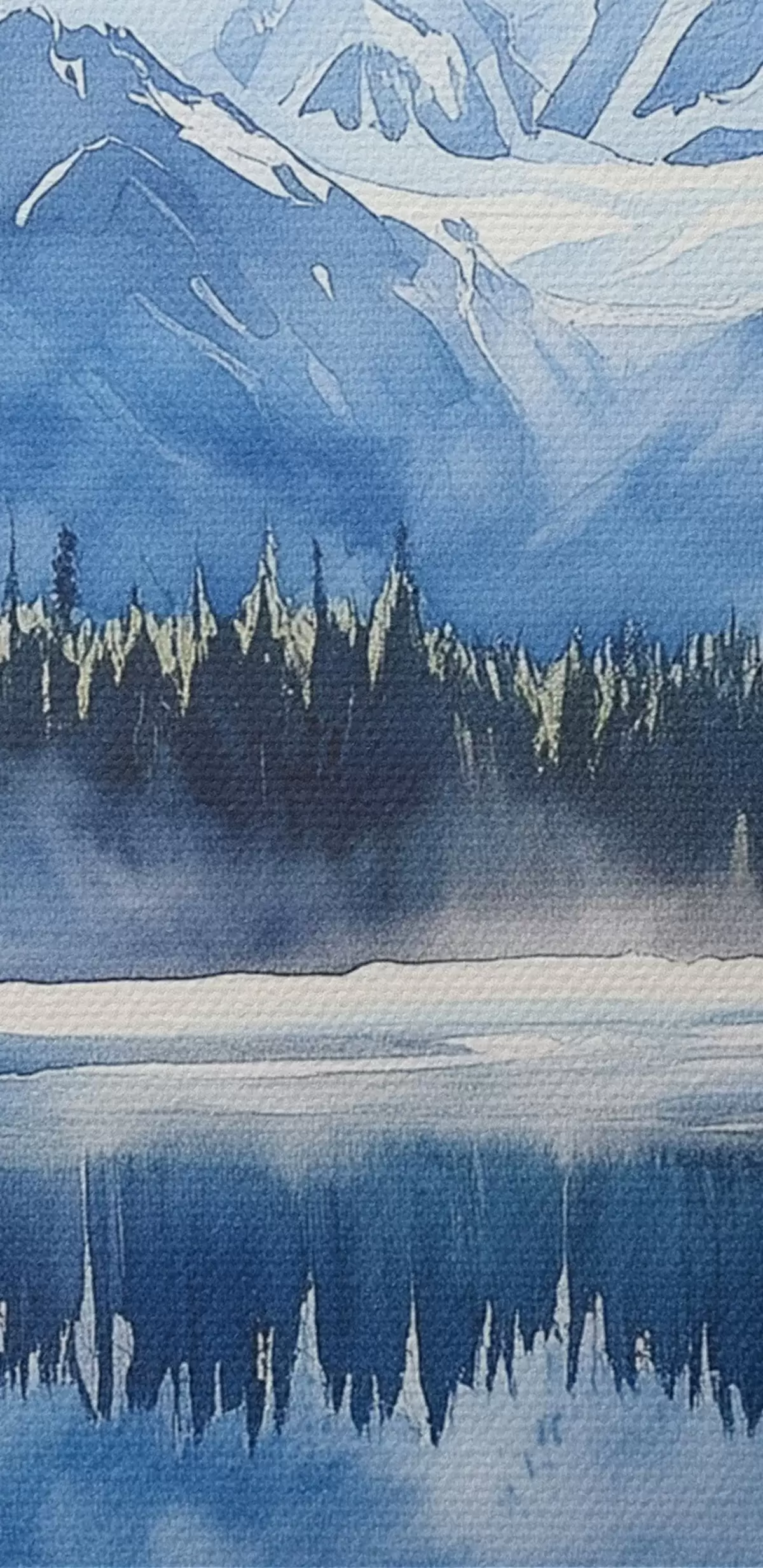Kép Gyönyörű hegyek Új-Zélandon, akvarell stílusban, tó, erdő, erdő Nr r44144