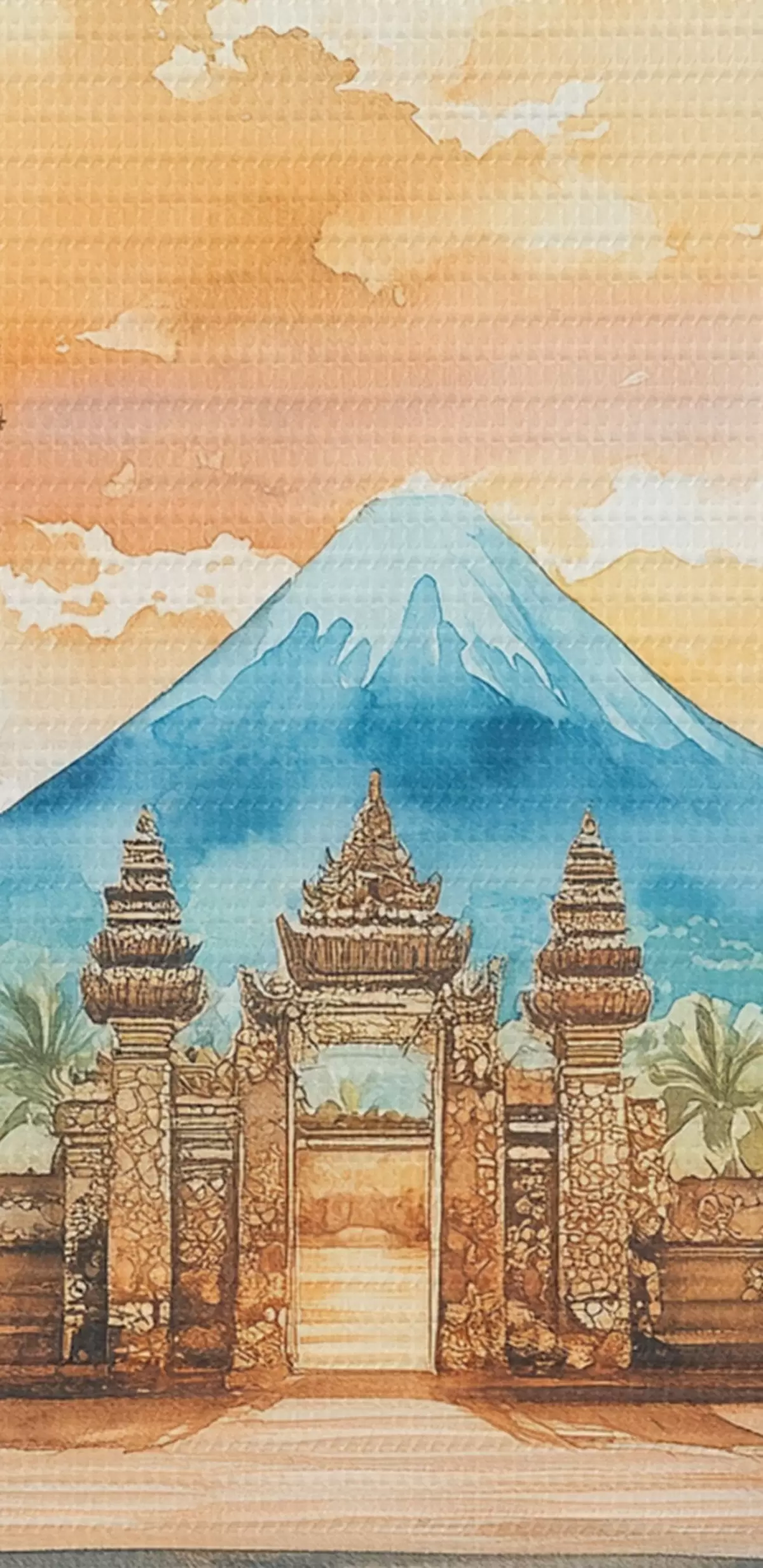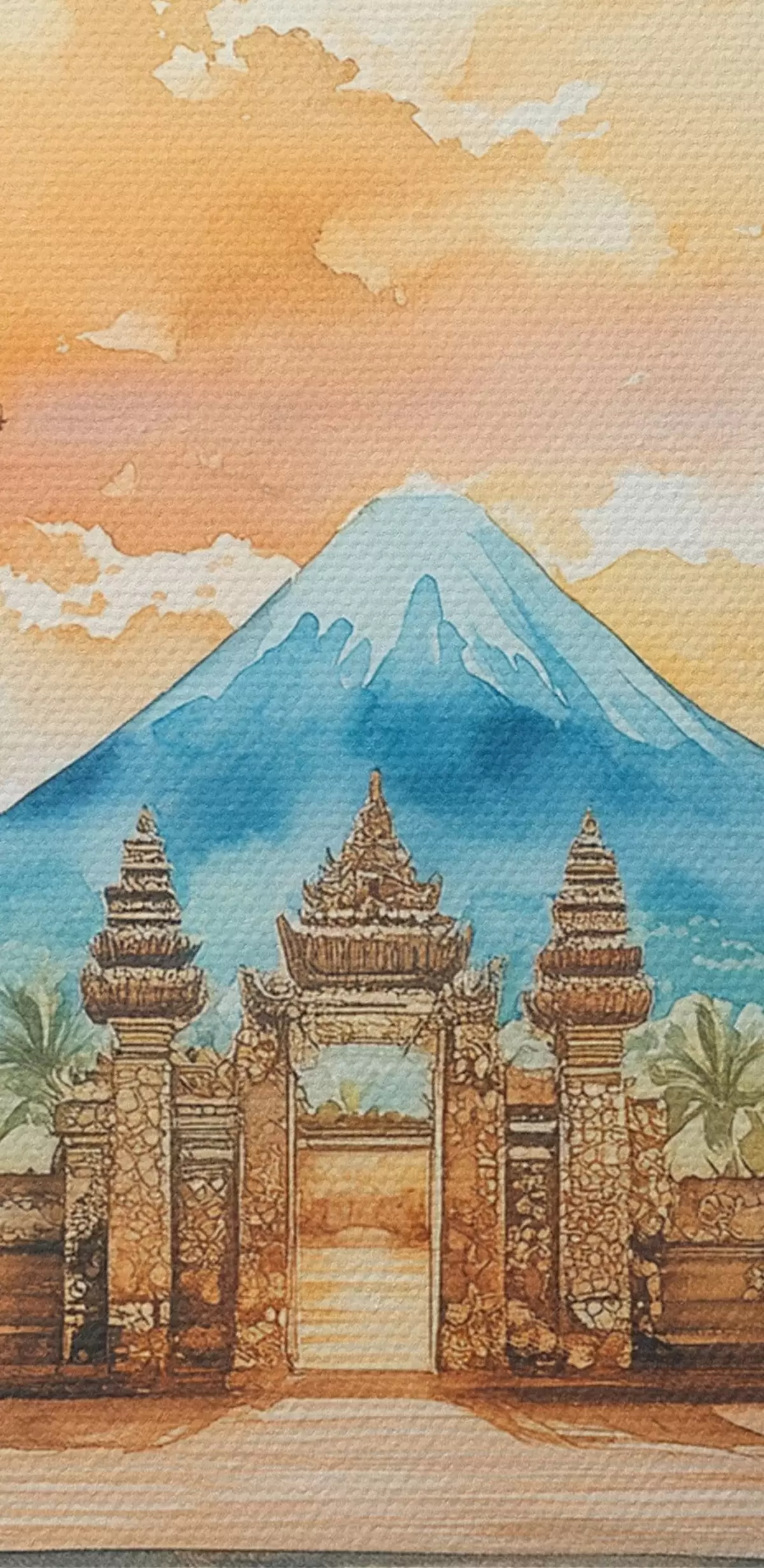 Kép Bali esztétika, templom, naplemente égbolt, trópusi természet, akvarell stílusban Nr r44149