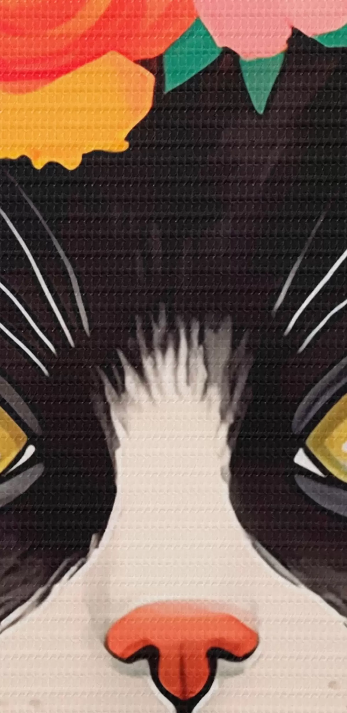 Ahhoz, hogy a vásznat a feszítőrúdra feszítsük anélkül, hogy a kép megsérülne, tükrözött képet használunk.