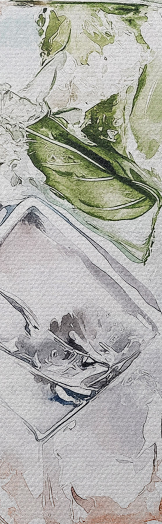 Ahhoz, hogy a vásznat a feszítőrúdra feszítsük anélkül, hogy a kép megsérülne, tükrözött képet használunk.