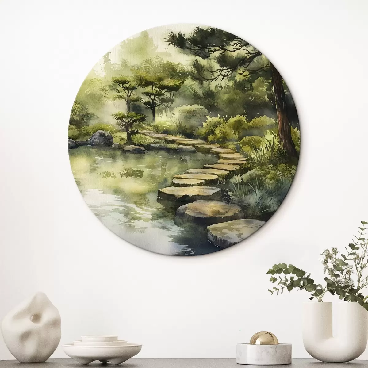 Kép Keleti erdő sziklákkal, tó és fenyőfák, zöldellő növényzet, akvarell stílusban Nr r44311