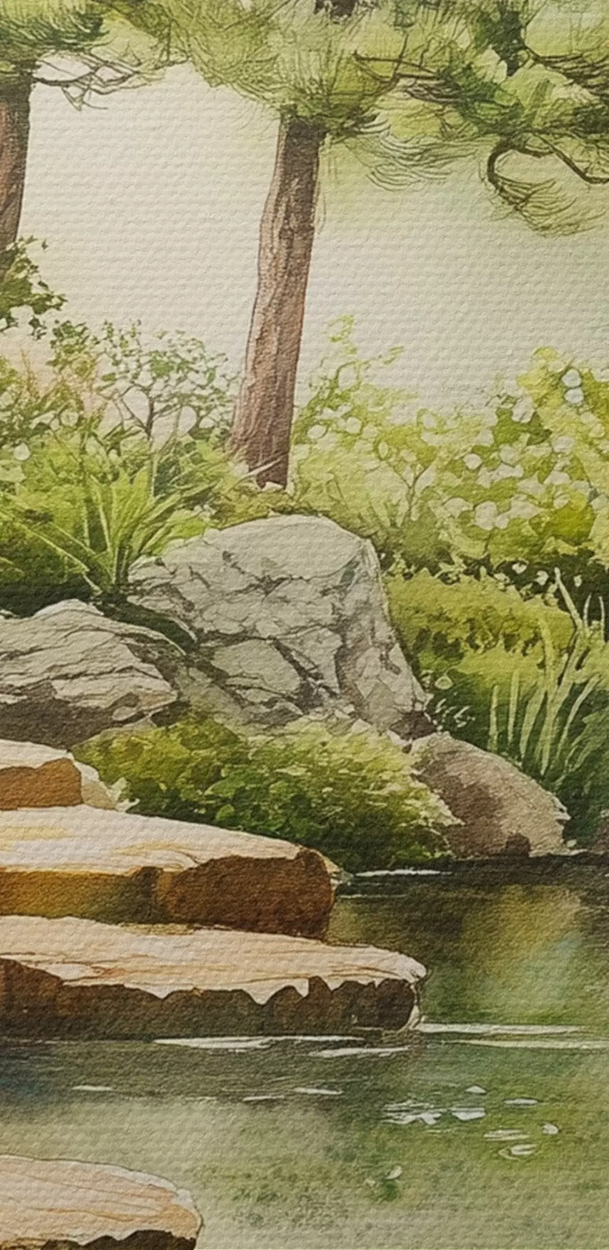 Kép Keleti kert tóval és fákkal, természet, akvarell stílusban Nr r44313