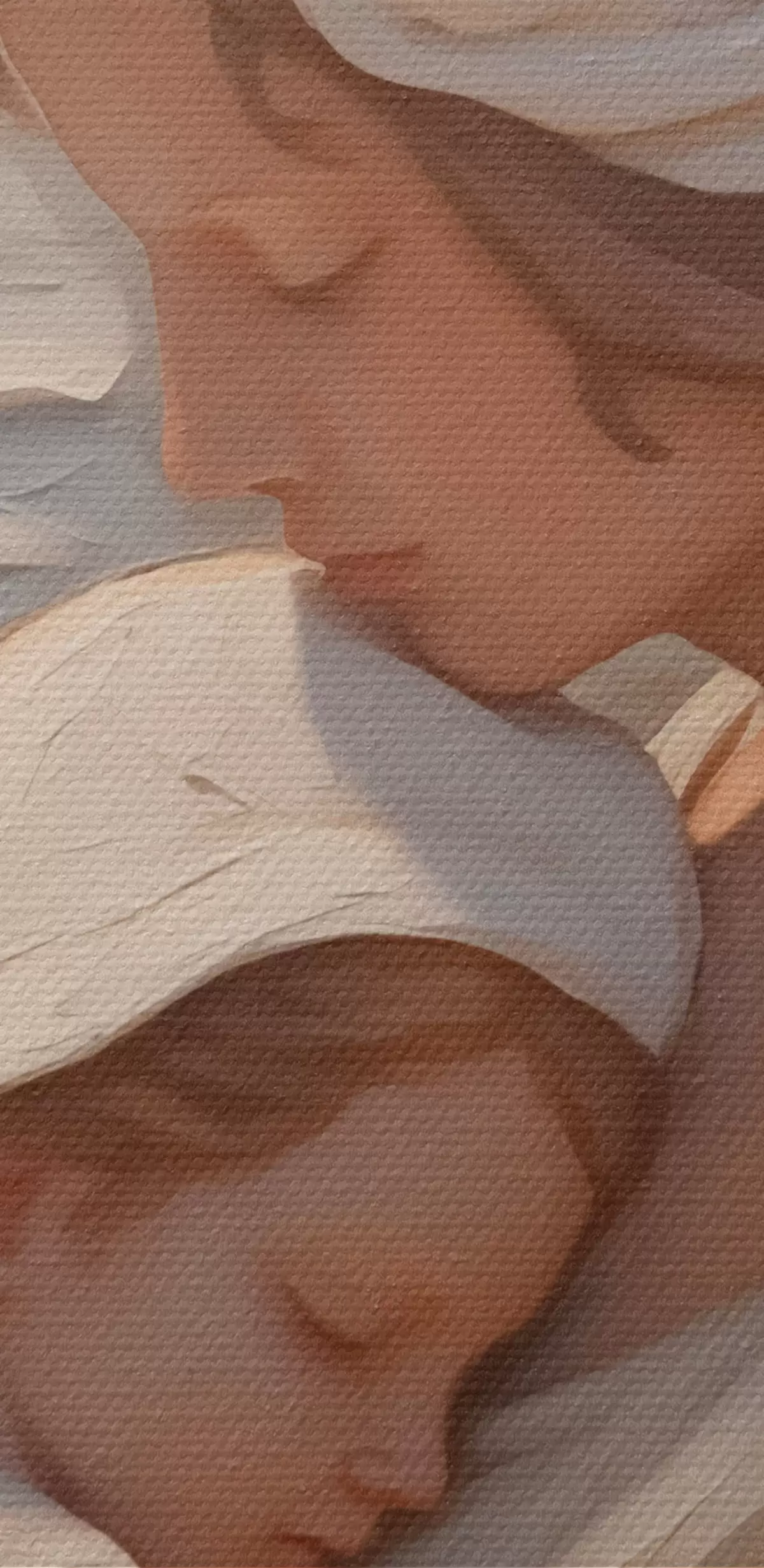Ahhoz, hogy a vásznat a feszítőrúdra feszítsük anélkül, hogy a kép megsérülne, tükrözött képet használunk.