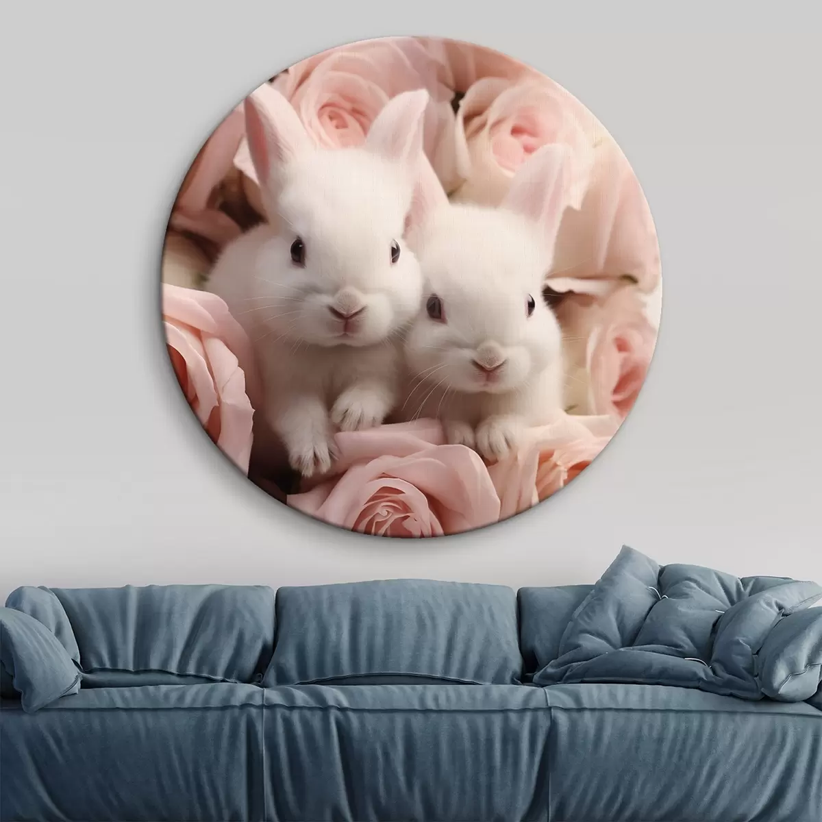 Kép Két fehér nyúl finom rózsás virágokban Nr r44380
