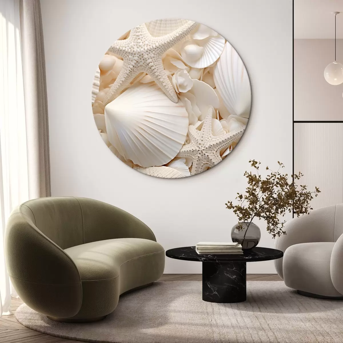 Kép Dekoratív fehér kagylók és tengeri csillagok, amelyek texturált monokróm kompozíciót hoznak létre Nr r44392