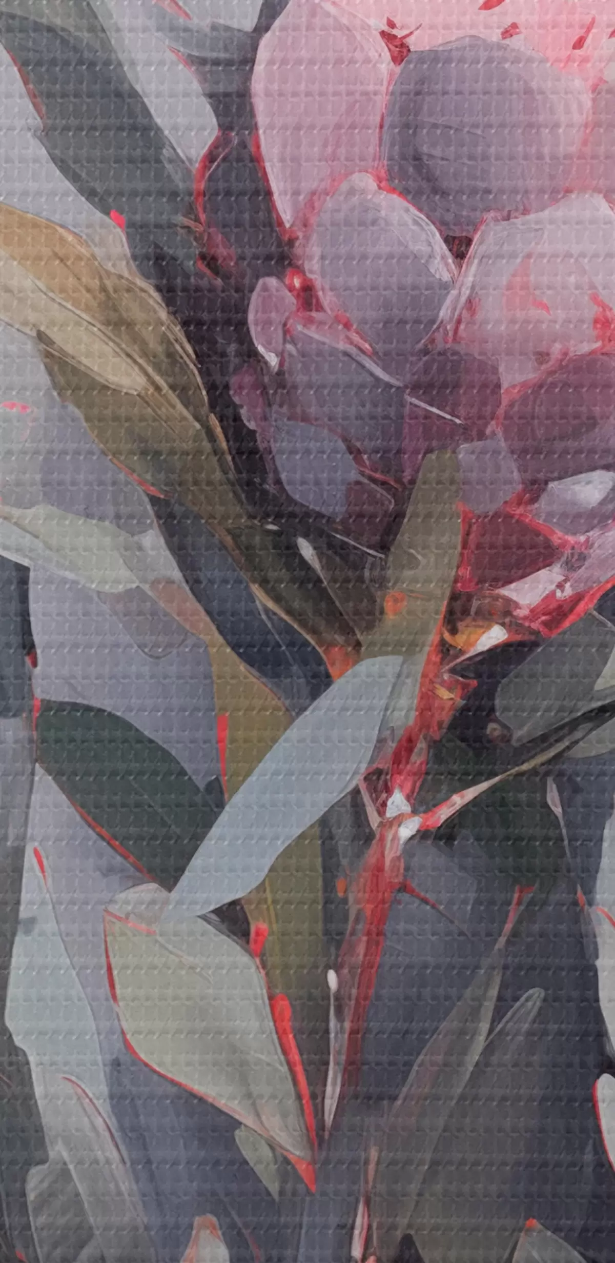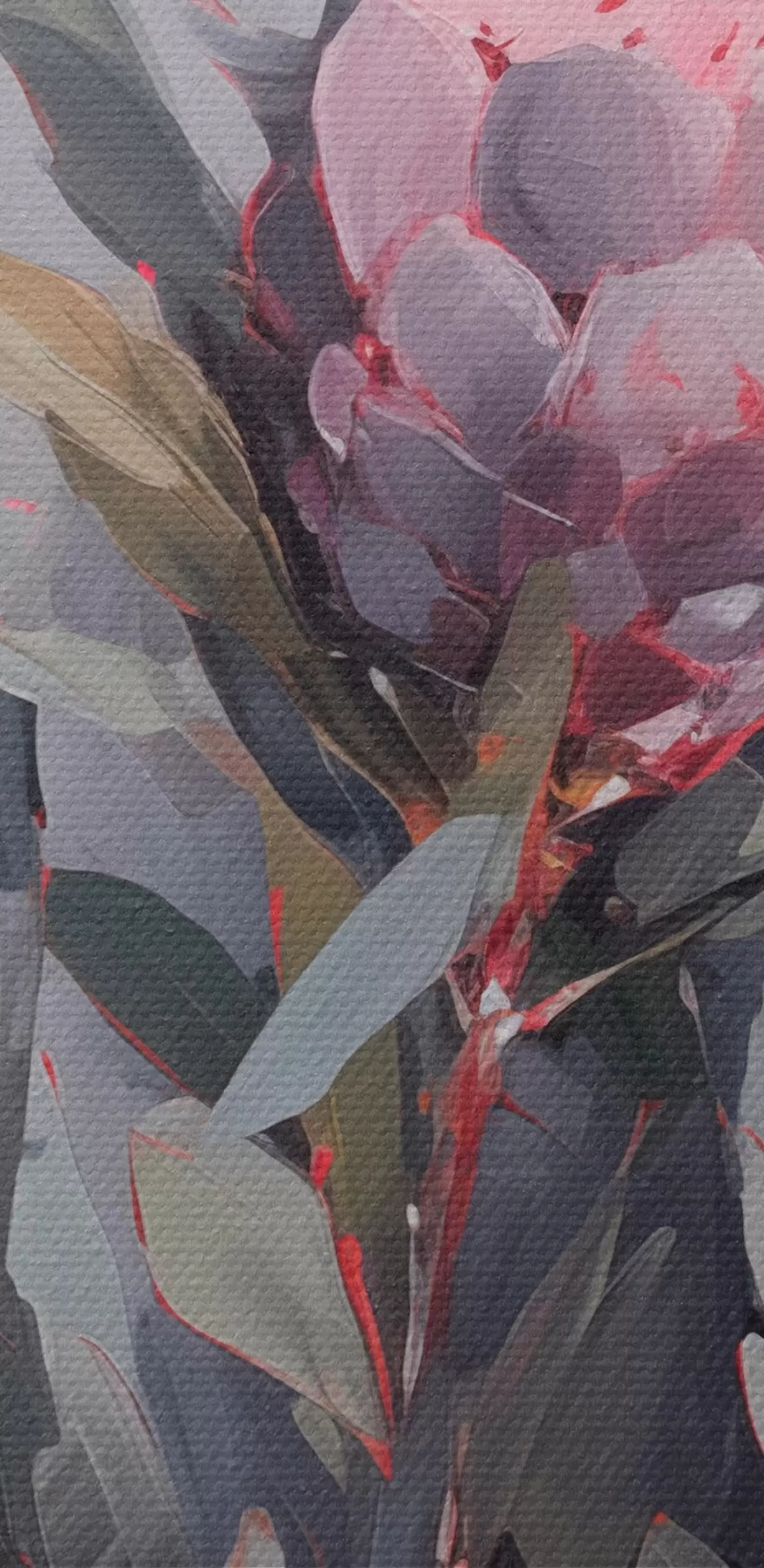Kép Rózsaszín protea virágok zöld levelekkel, lágy ecsetvonások, sötét színek, elegáns kompozíció Nr r44400