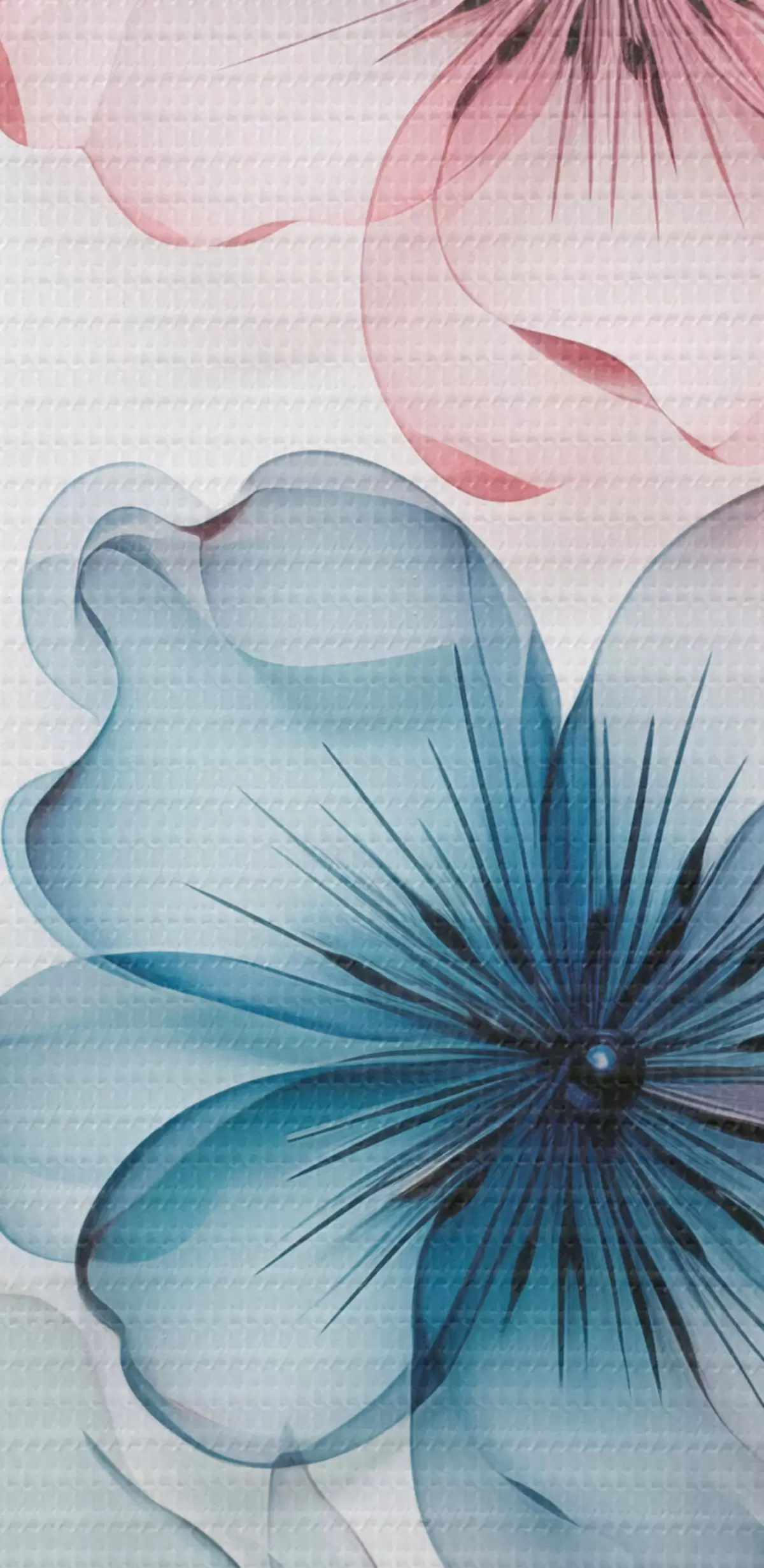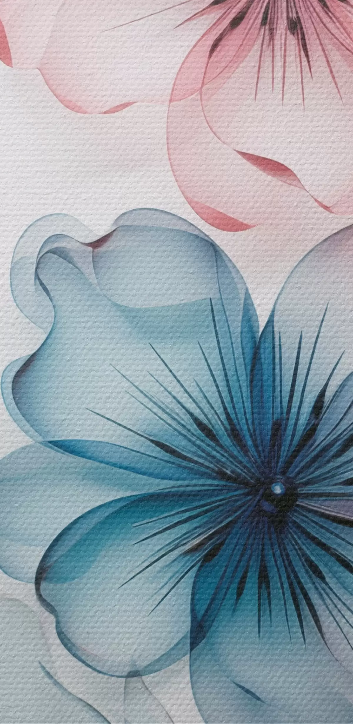 Kép Áttetsző, tompa rózsaszín és kék virágok látható porzókkal és szárakkal Nr r44405