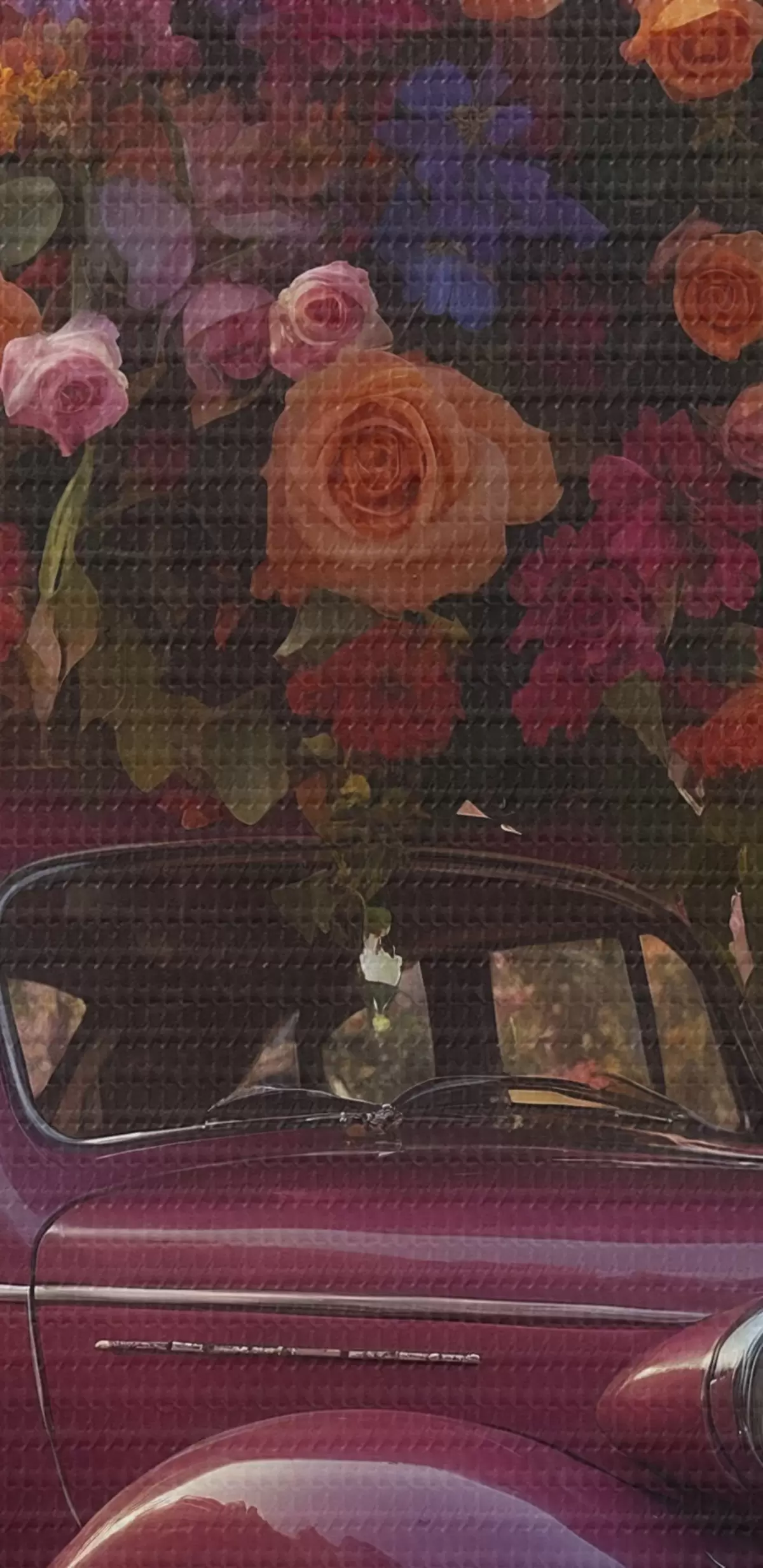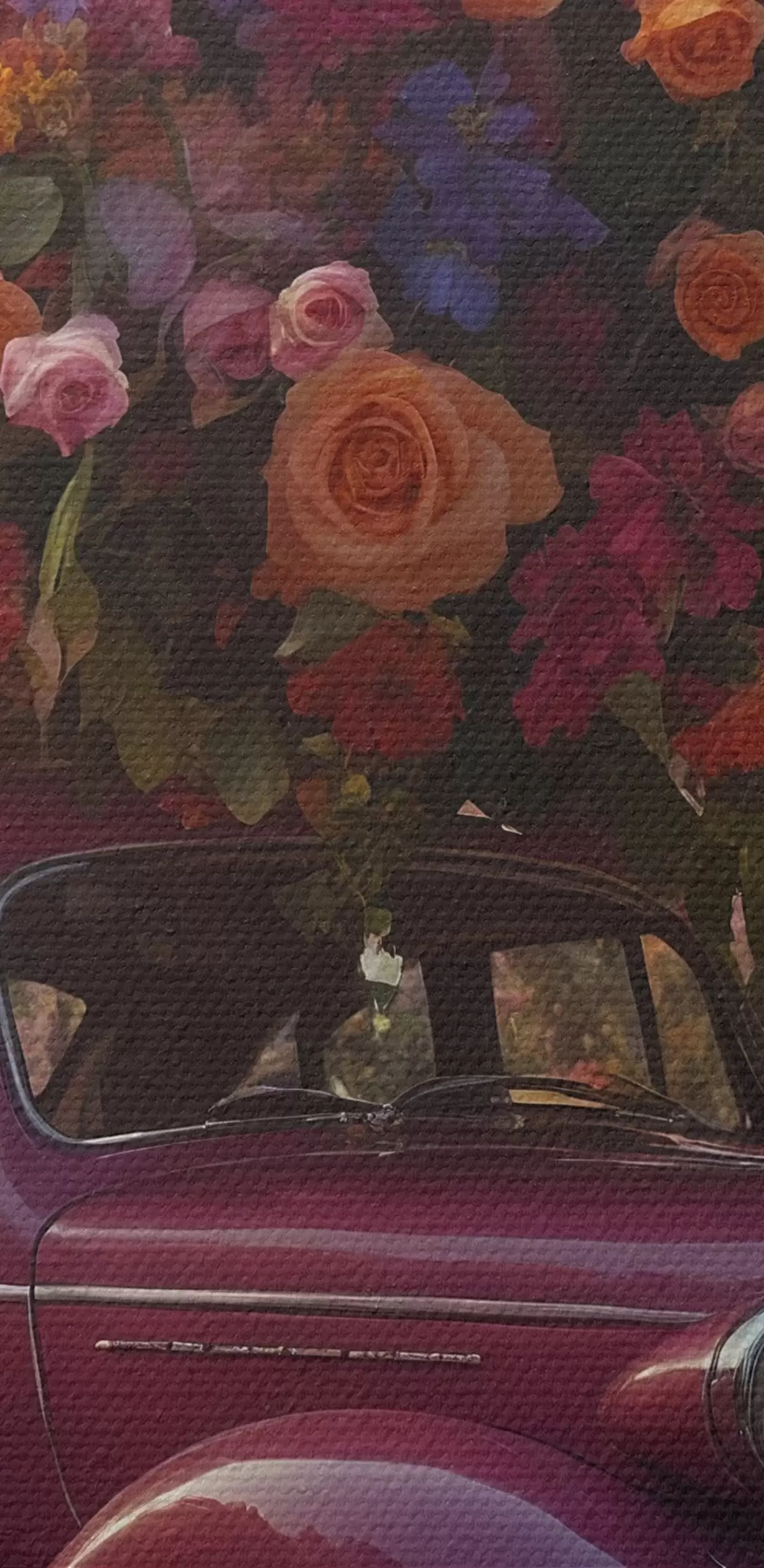 Kép Retro autó és egy hatalmas csokor virág Nr r44471