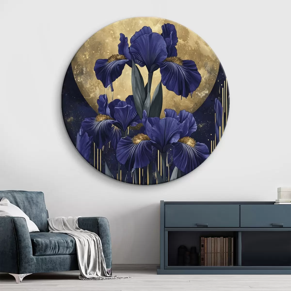 Kép Írisz virágok, ragyogó hold, éjszakai égbolt, kék színek Nr r44510