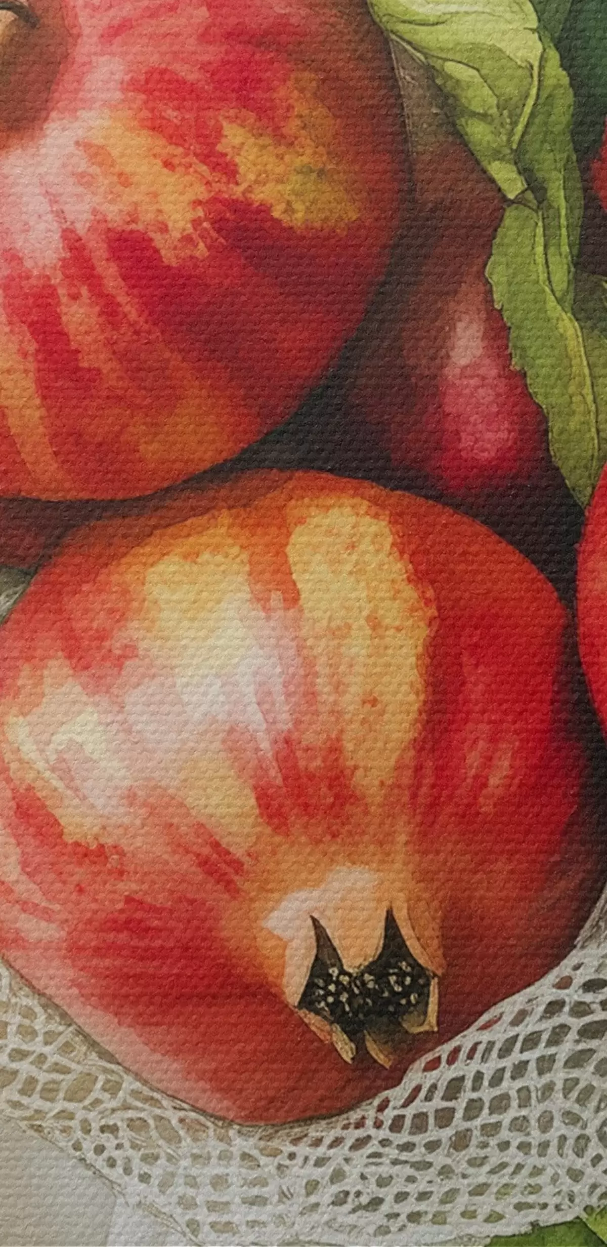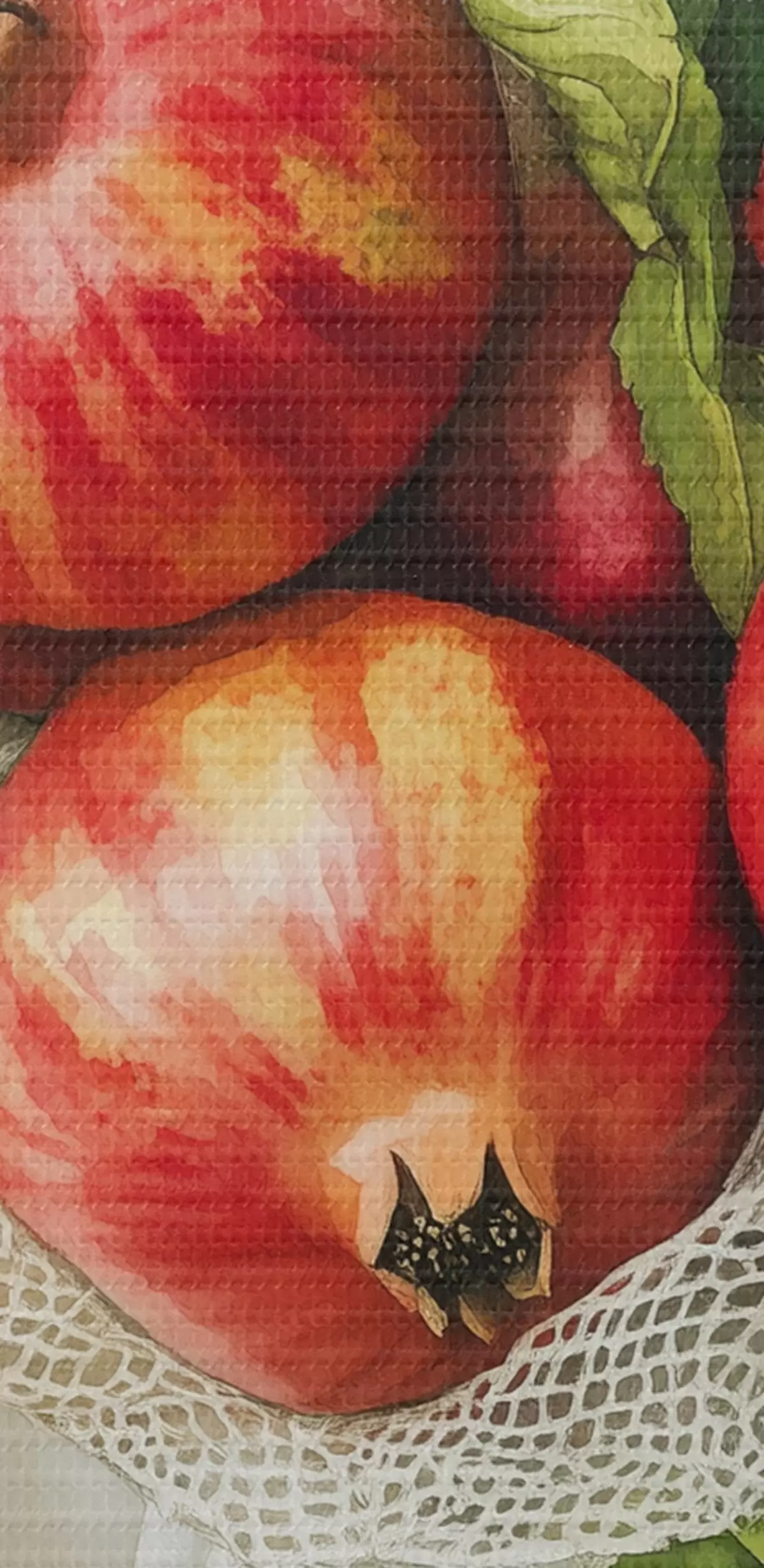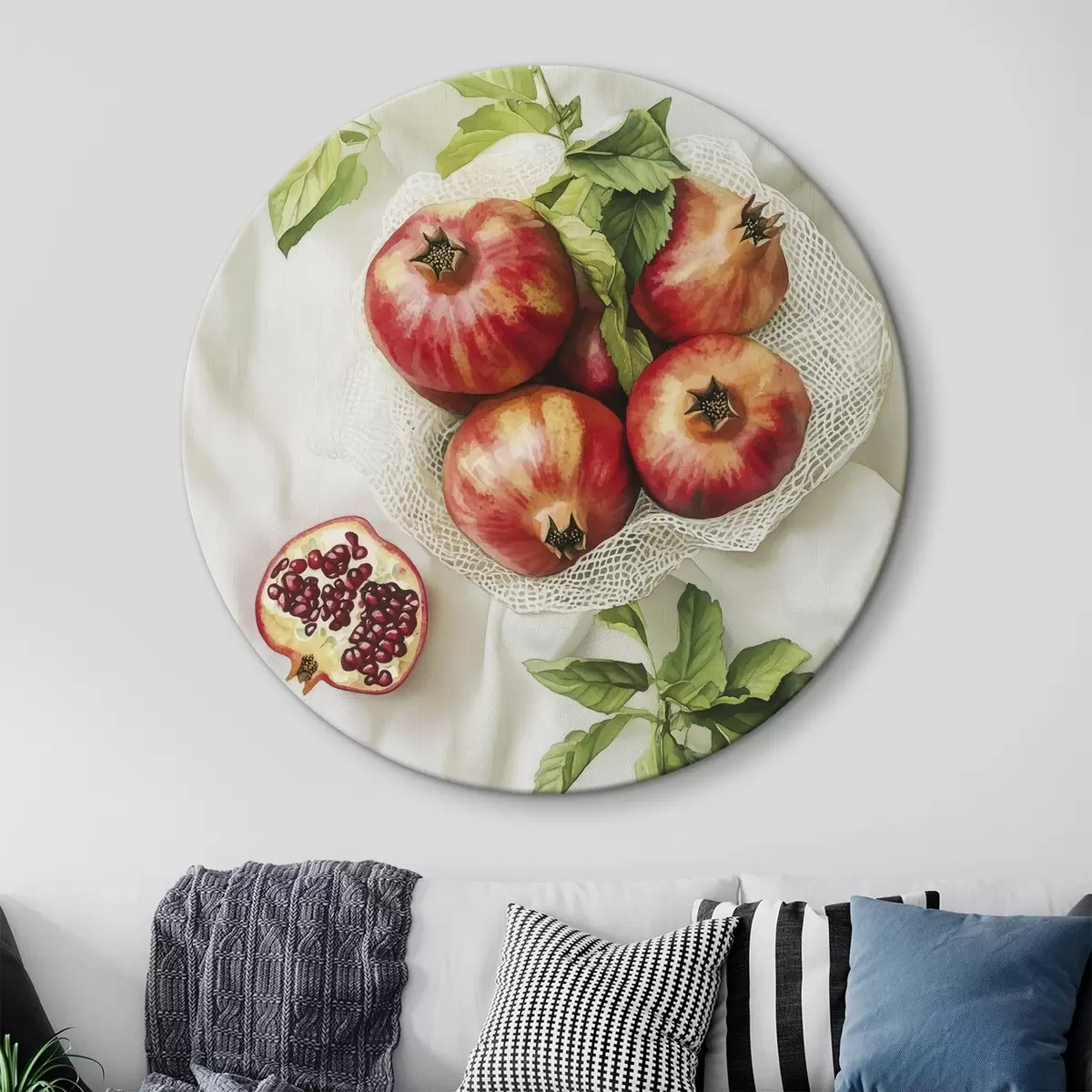 Kép Gránátalma menta levelekkel a vászon terítőkön, rusztikus stílusban Nr r44611