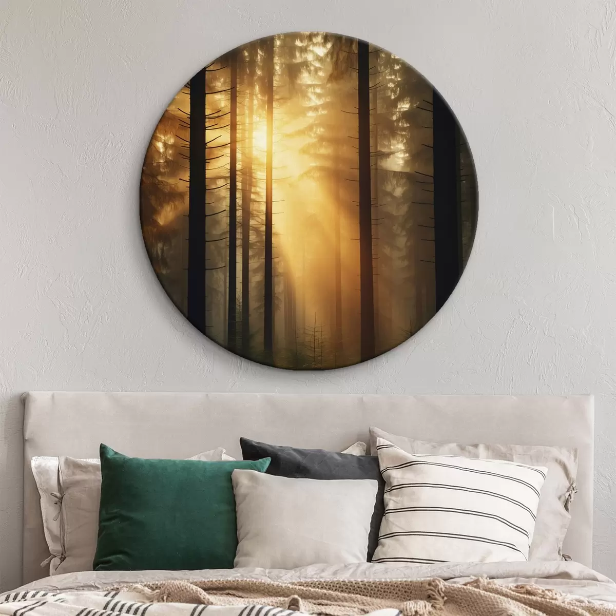 Kép Sűrű fenyőerdő naplemente fényével, realizmus, természet Nr r44615