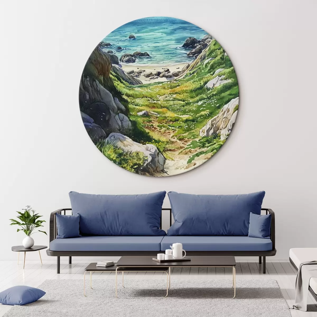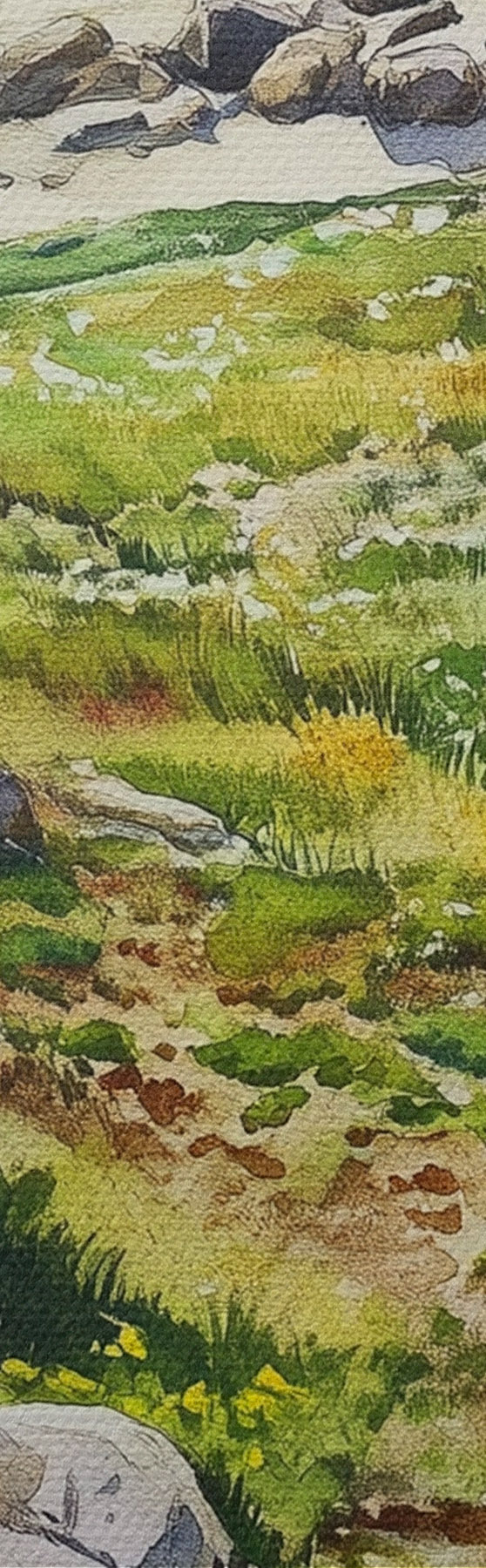 Kép Tengerpart sziklákkal és zöld fűvel, akvarell stílusban, nyár Nr r44616