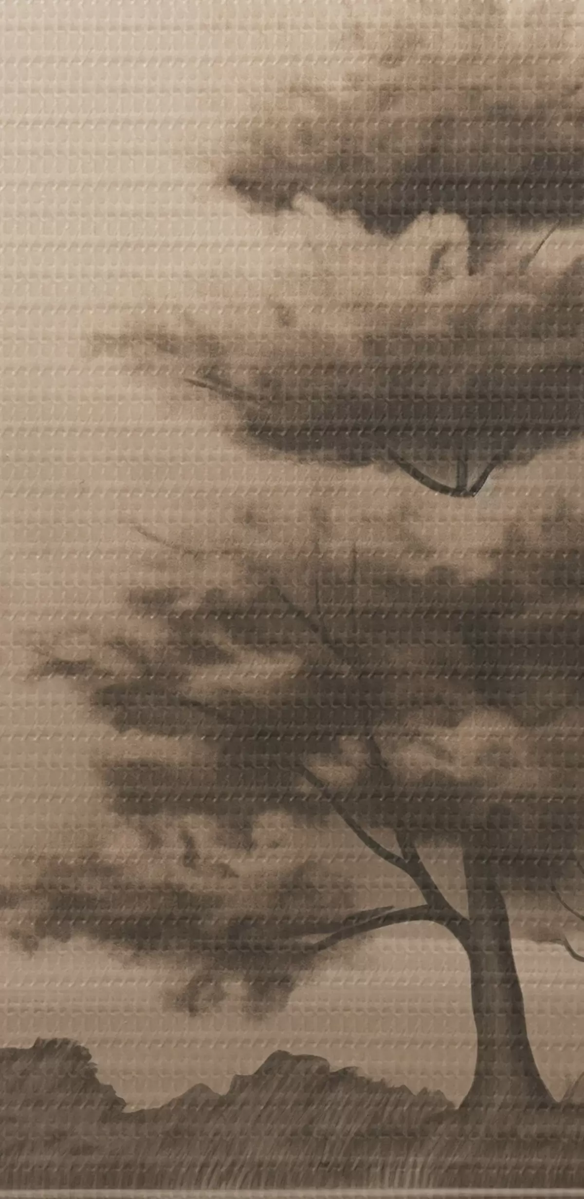 Ahhoz, hogy a vásznat a feszítőrúdra feszítsük anélkül, hogy a kép megsérülne, tükrözött képet használunk.