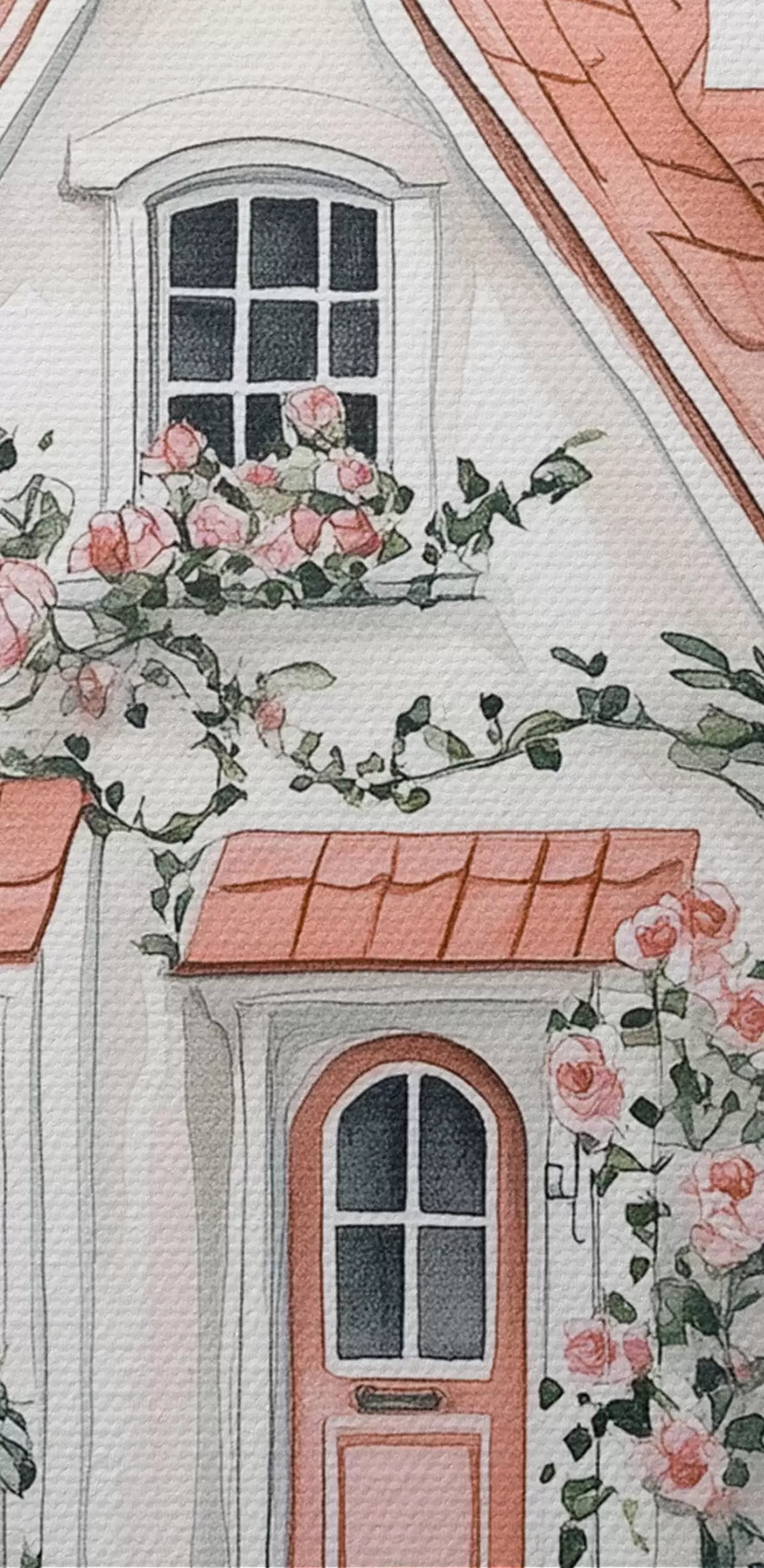 Kép Fehér ház rózsákkal kert az erdőben Nr r44716