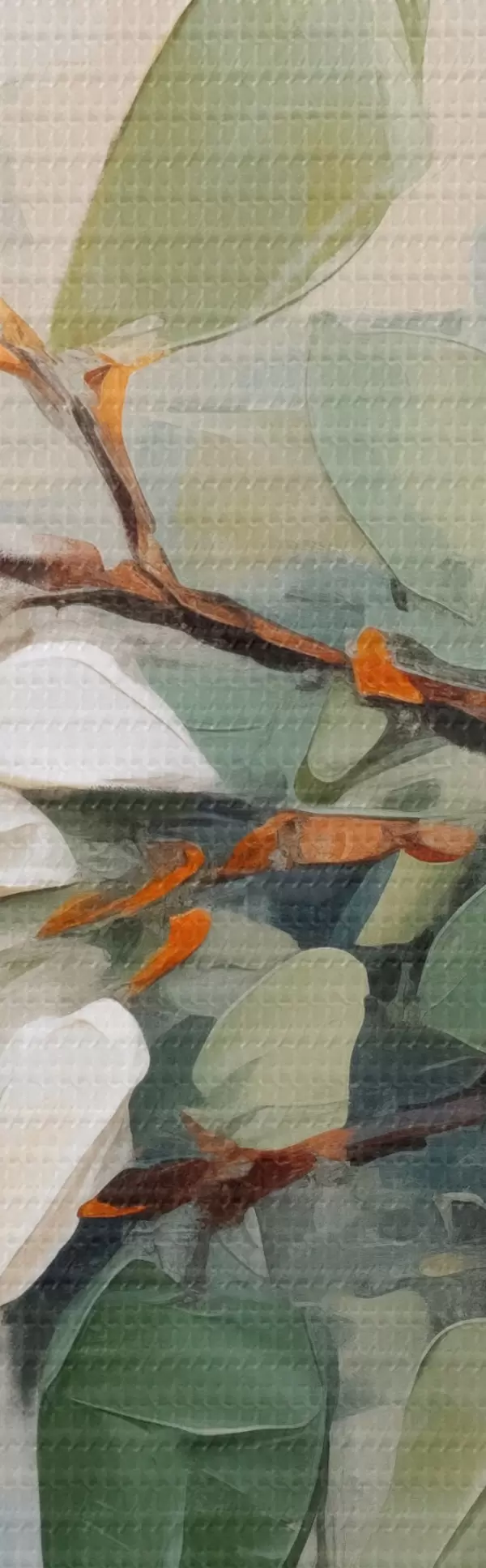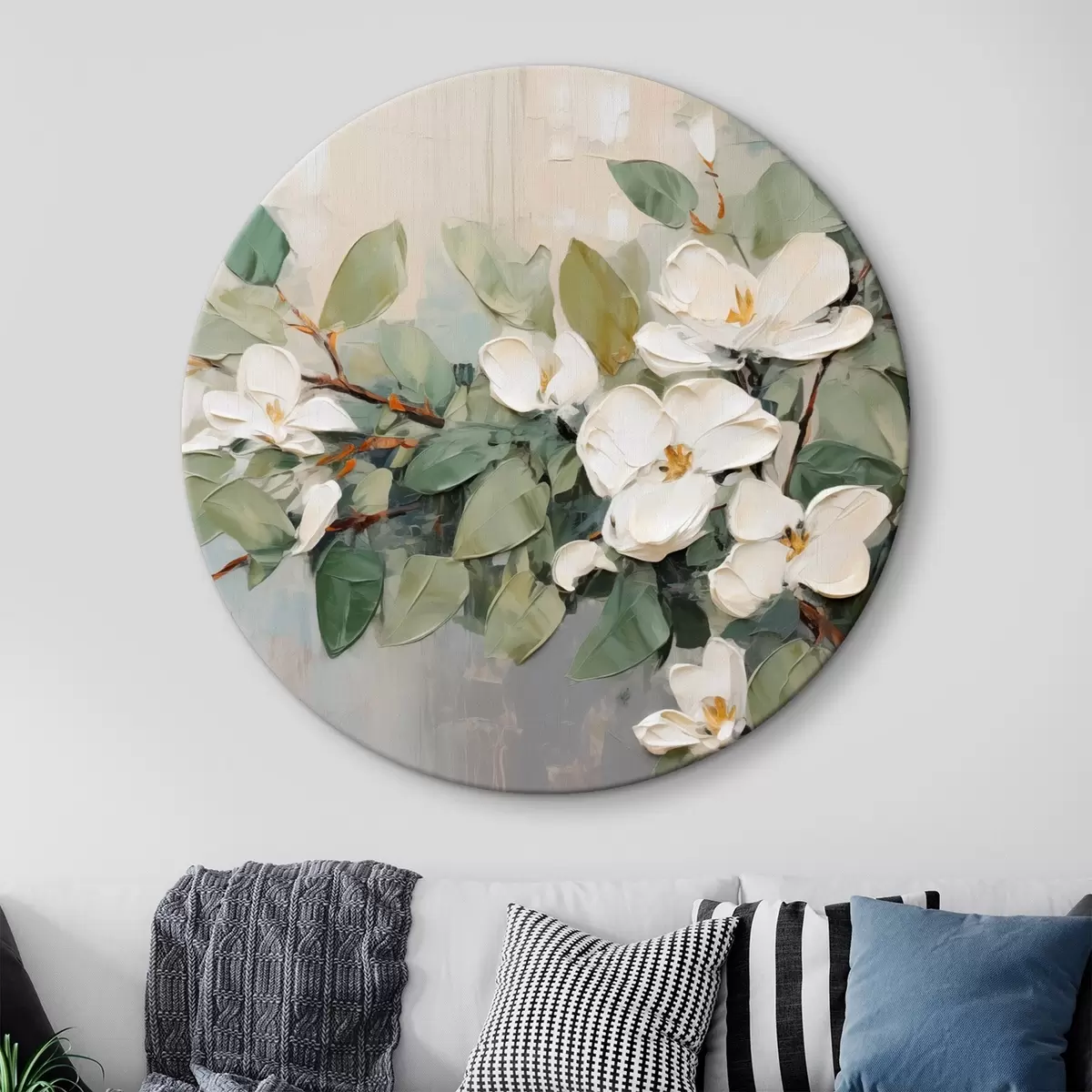 Kép Magnólia virágok zöld levelekkel egy ágon, impasto texturált stílus, lágy színpaletta Nr r44853