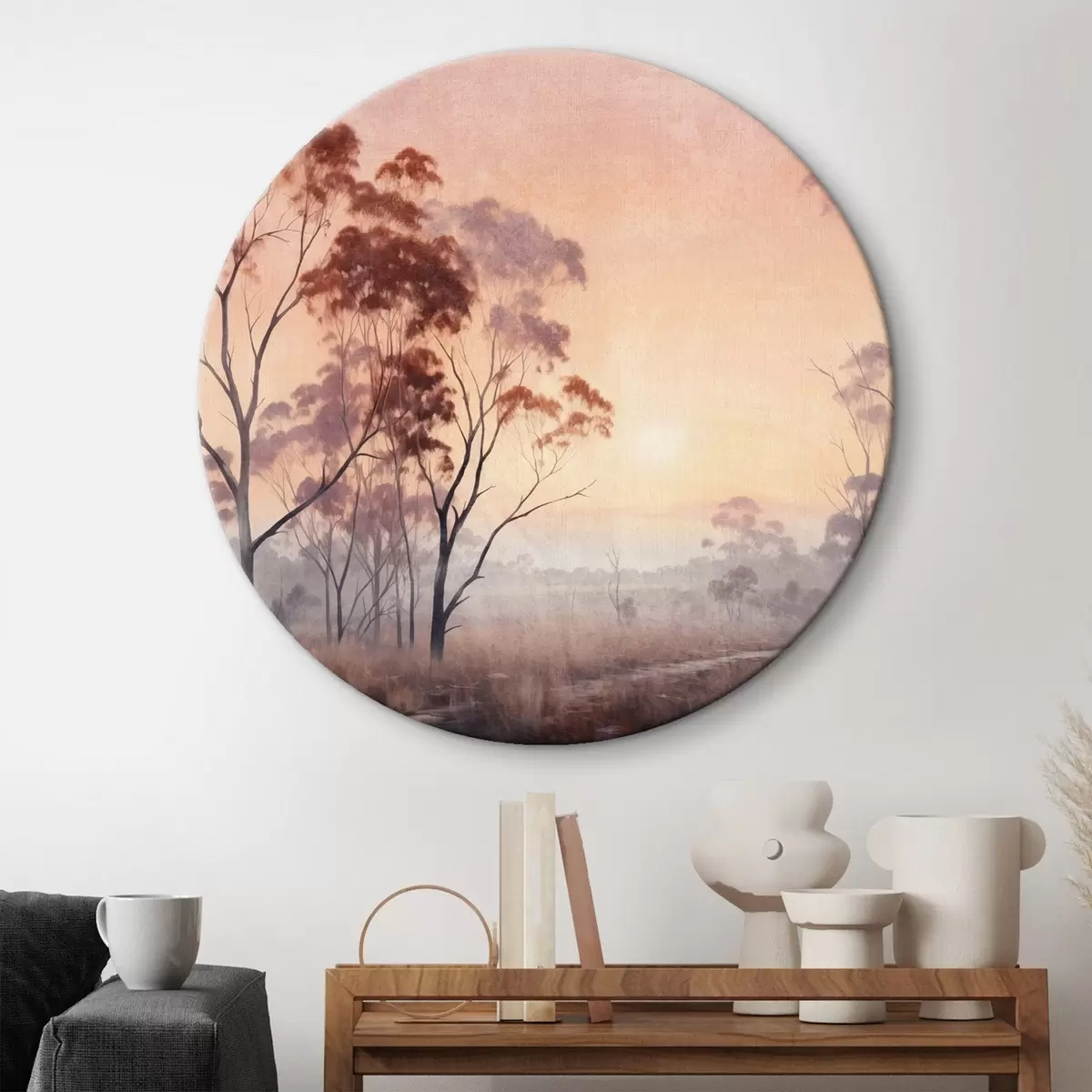 Kép Egy tájkép festmény egy mező magas fűvel és fákkal, a nap a háttérben van Nr r44854