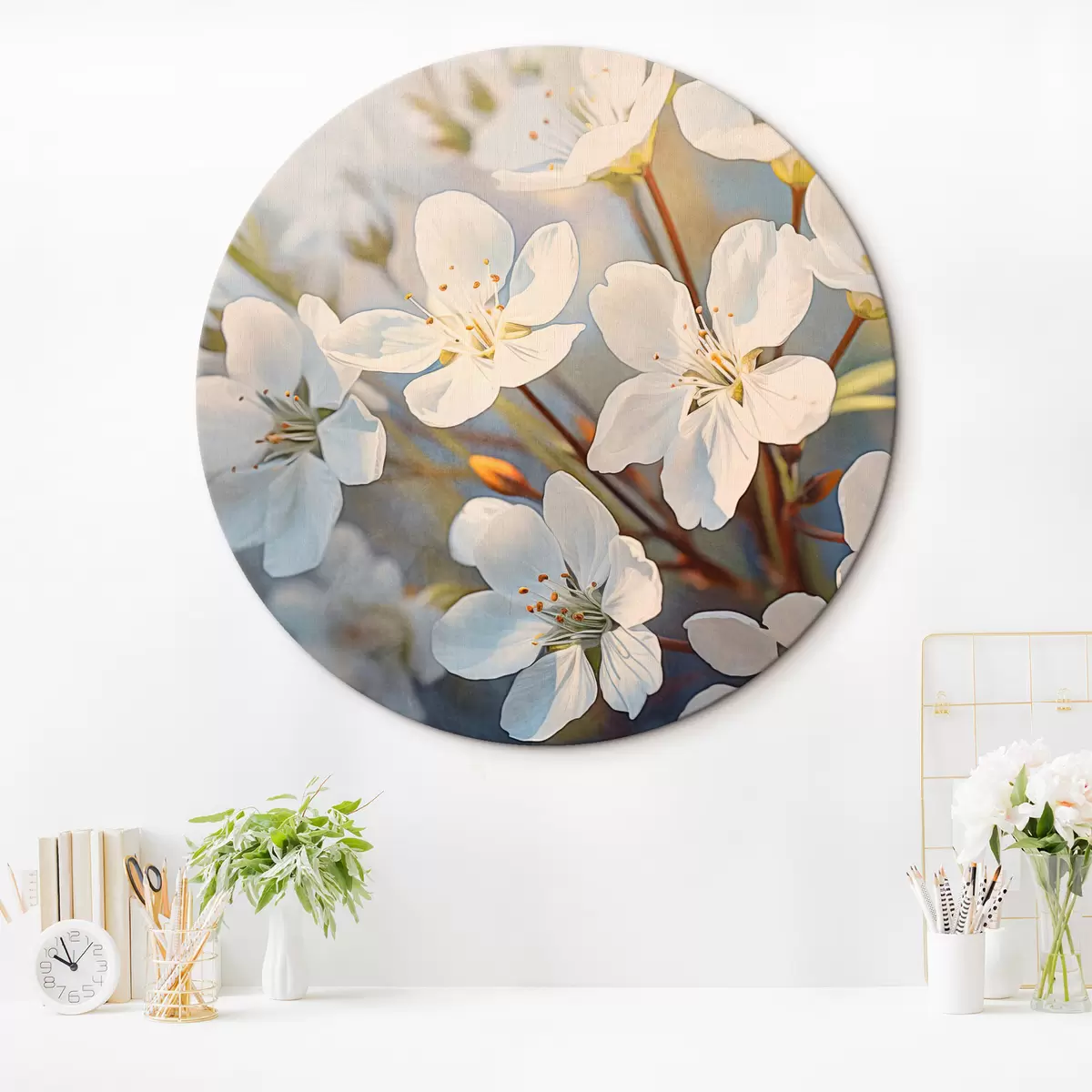 Kép Fehér textúrájú cseresznyevirágok akvarell stílusban, finom szirmok, tavaszi szezonban Nr r44859