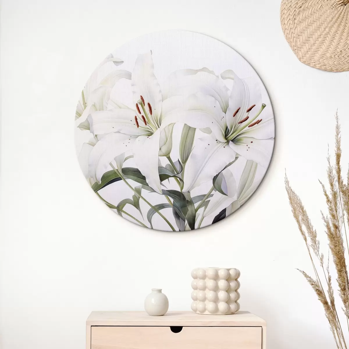 Kép Fehér liliom csokor zöld levelekkel, finom szirmokkal és lágy fehér háttérrel Nr r44868