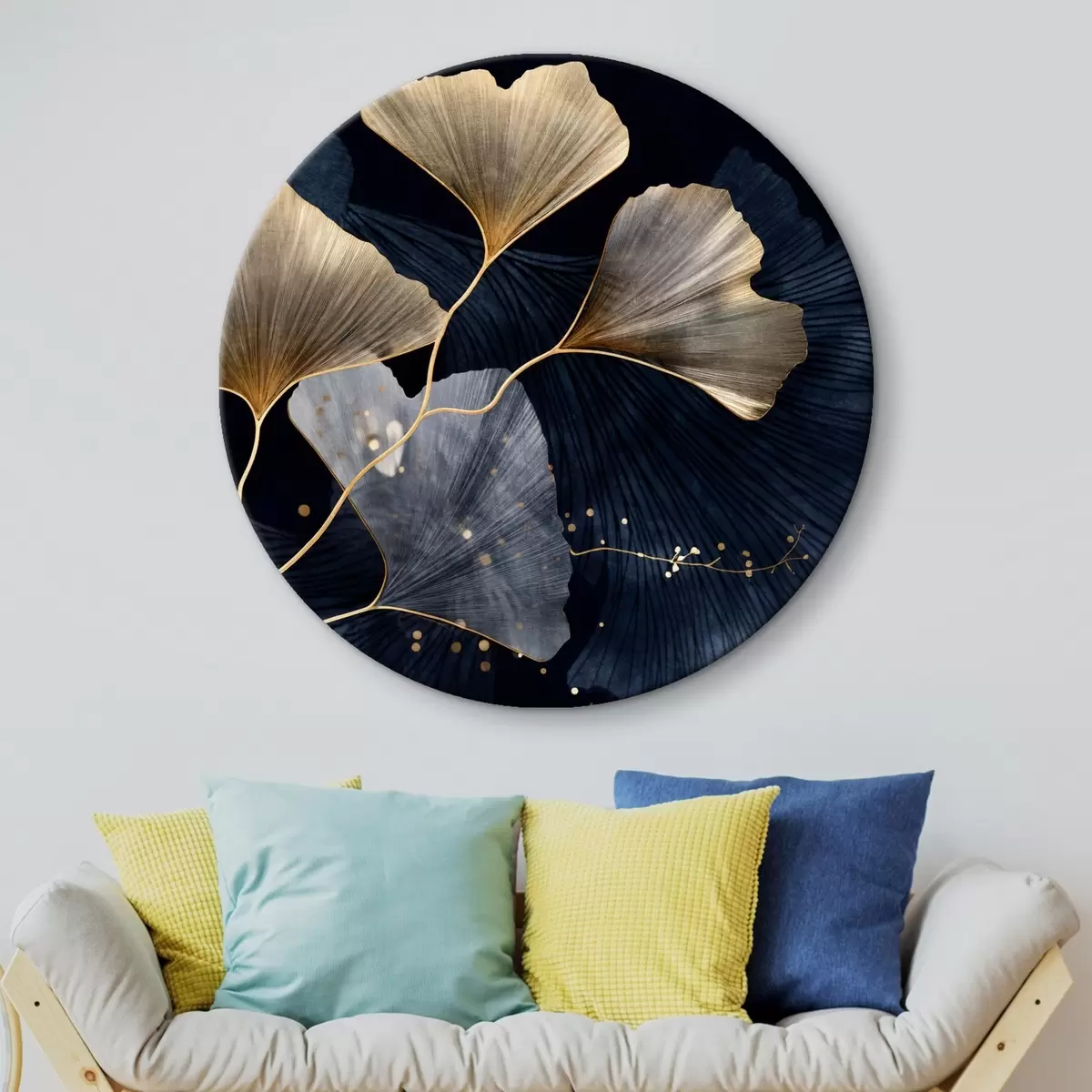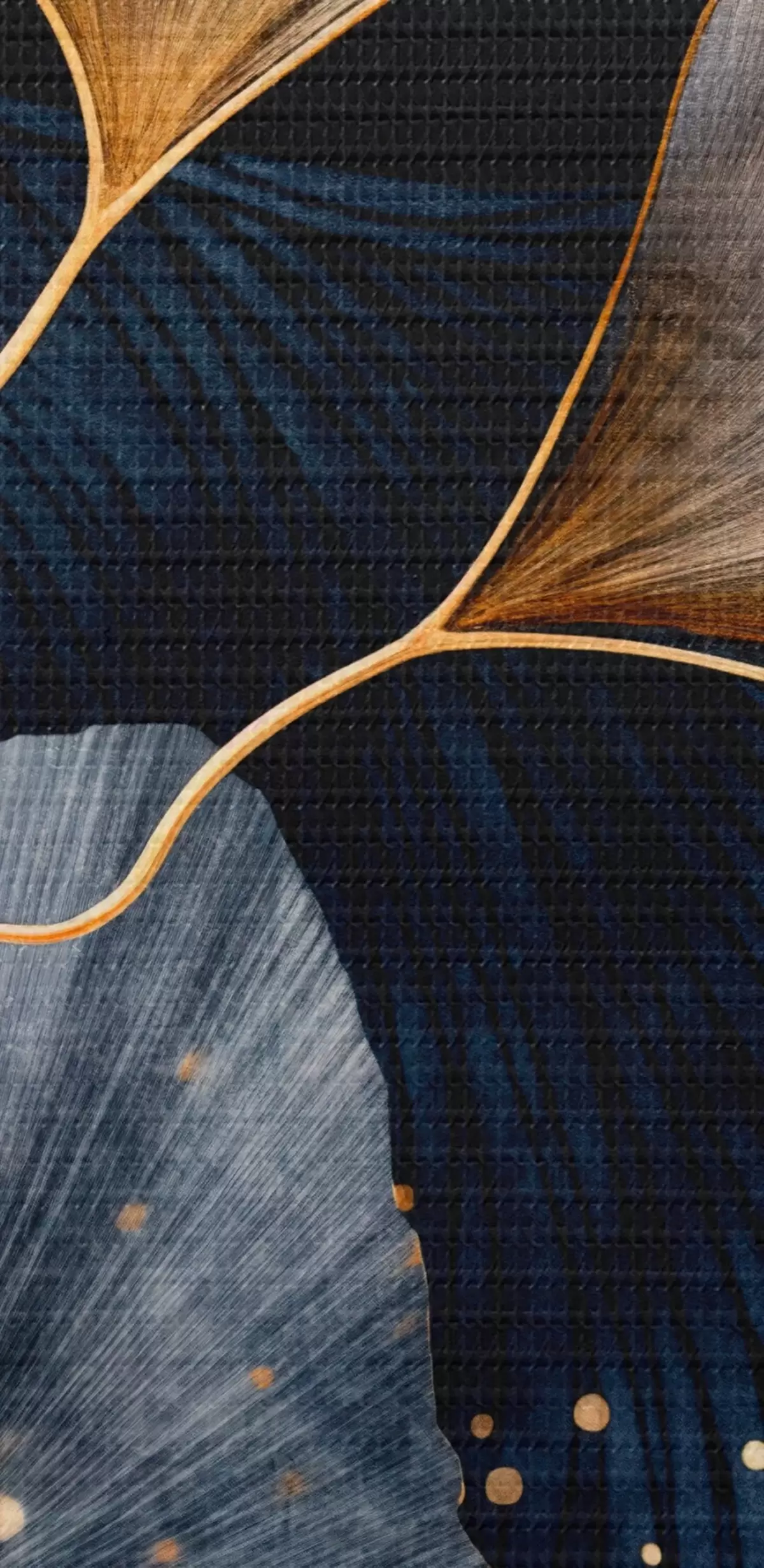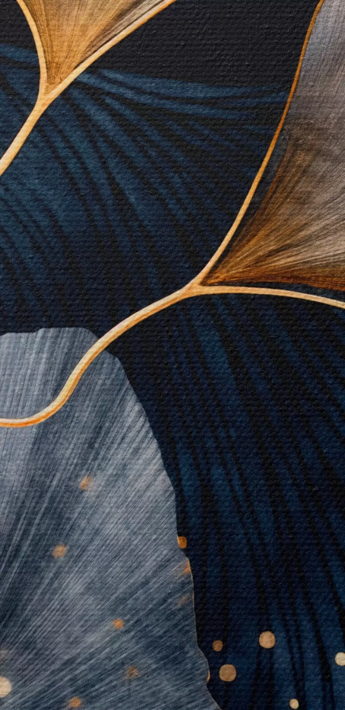 Kép Ginkgo levelek sárga és kék tónusokban, elegáns sötét háttér, modern művészet, minimalista stílus, természet ihlette stílus Nr r44921