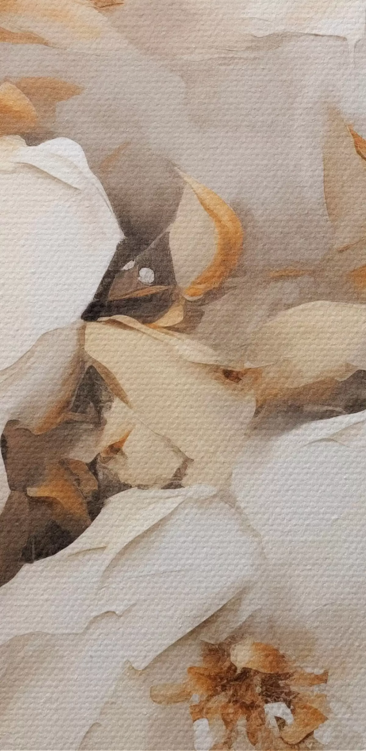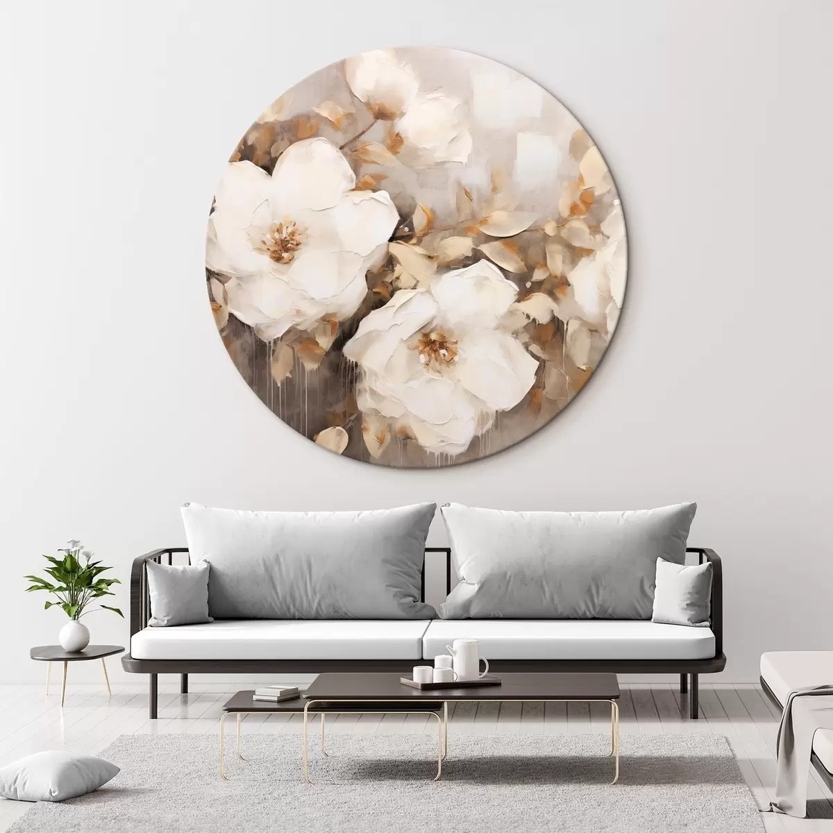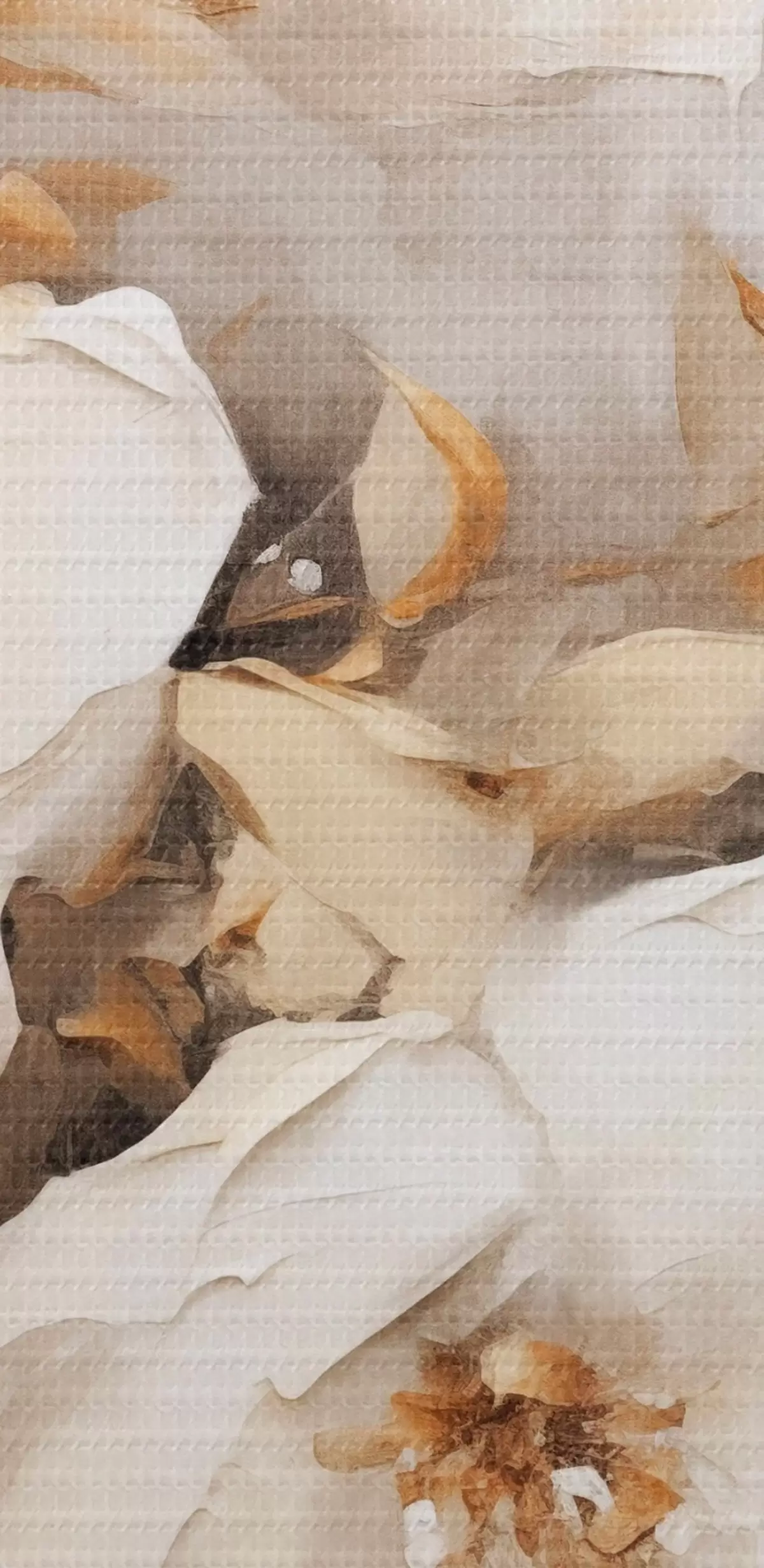 Kép Fehér virágok barna levelekkel bézs színű háttérben, olajfestmény utánzat, virágkötészet, botanikai művészet Nr r44922