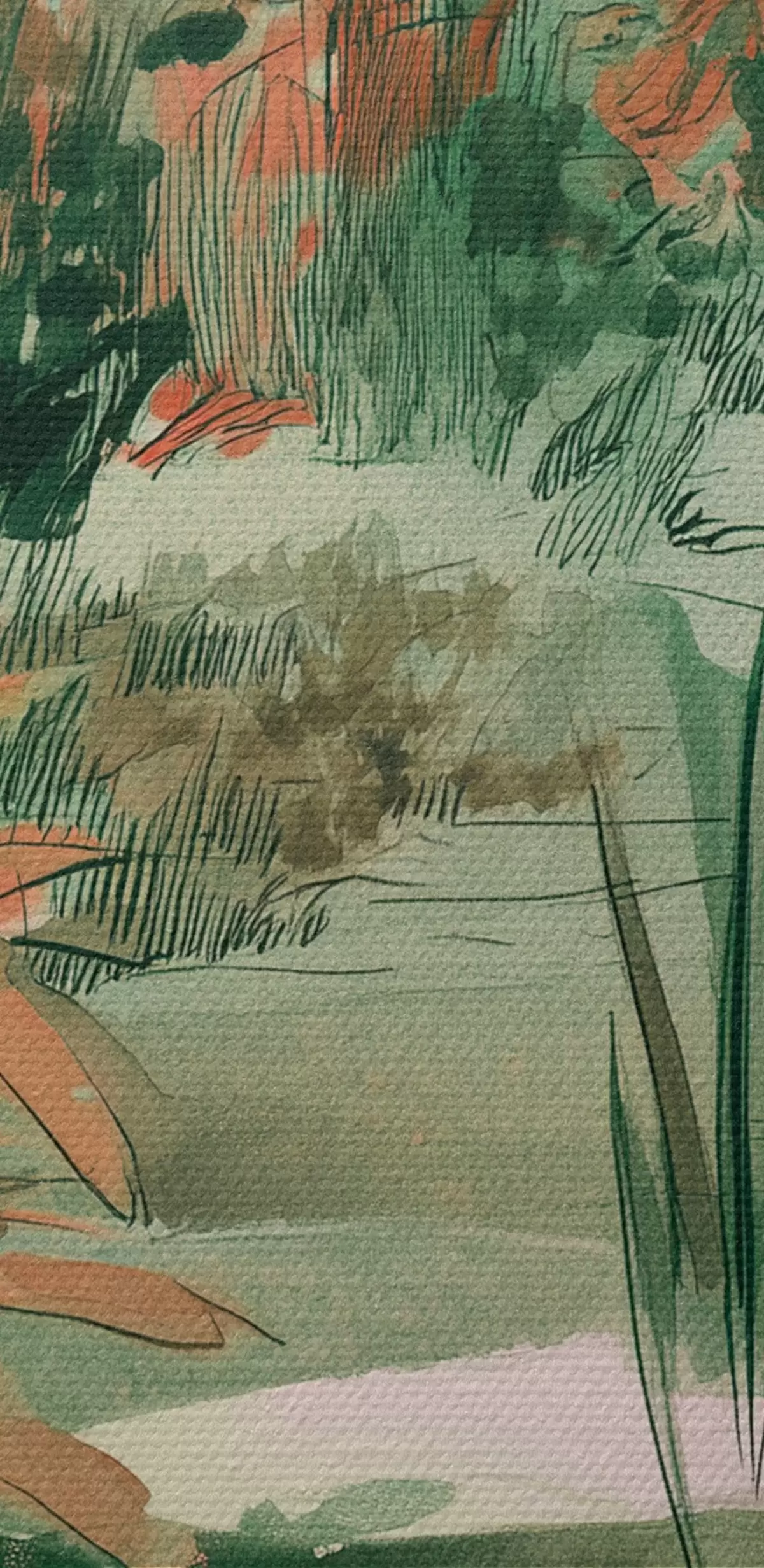 Kép Keleti kert bokrokkal és fákkal, zöld színekkel Nr r44982