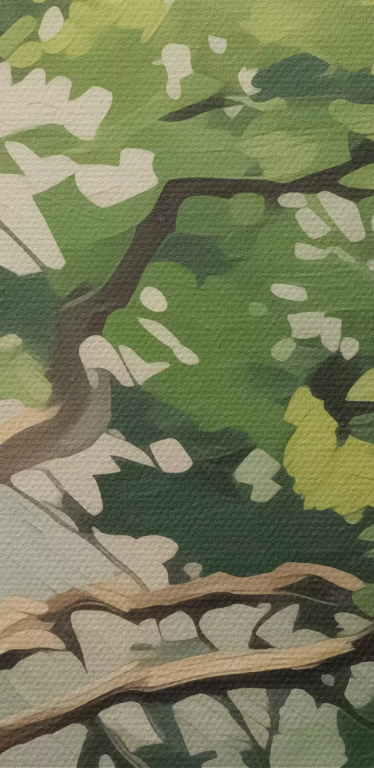 Ahhoz, hogy a vásznat a feszítőrúdra feszítsük anélkül, hogy a kép megsérülne, tükrözött képet használunk.