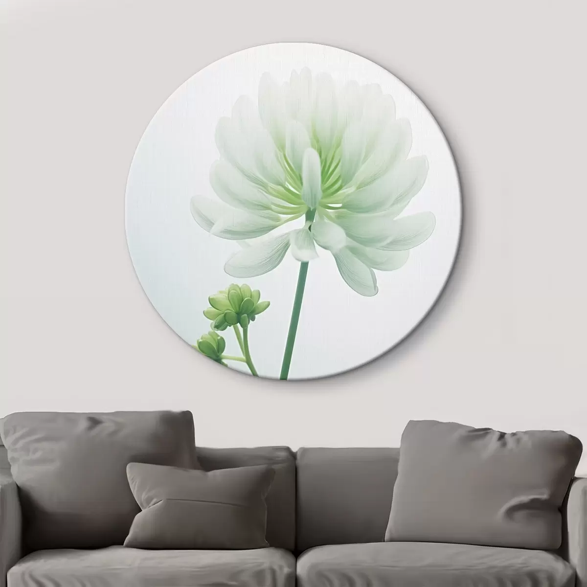 Kép Fehér lóhere virág zöld szárral és levelekkel, lágy megvilágítás, tiszta háttér, minimalista kompozíció, botanika Nr r45171