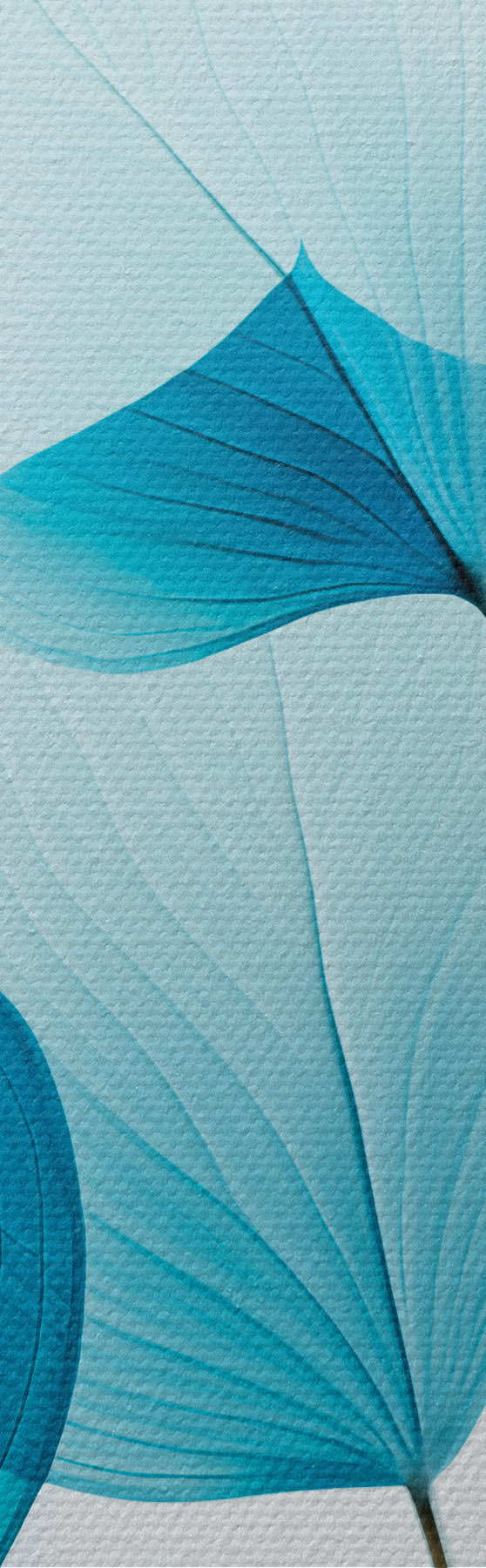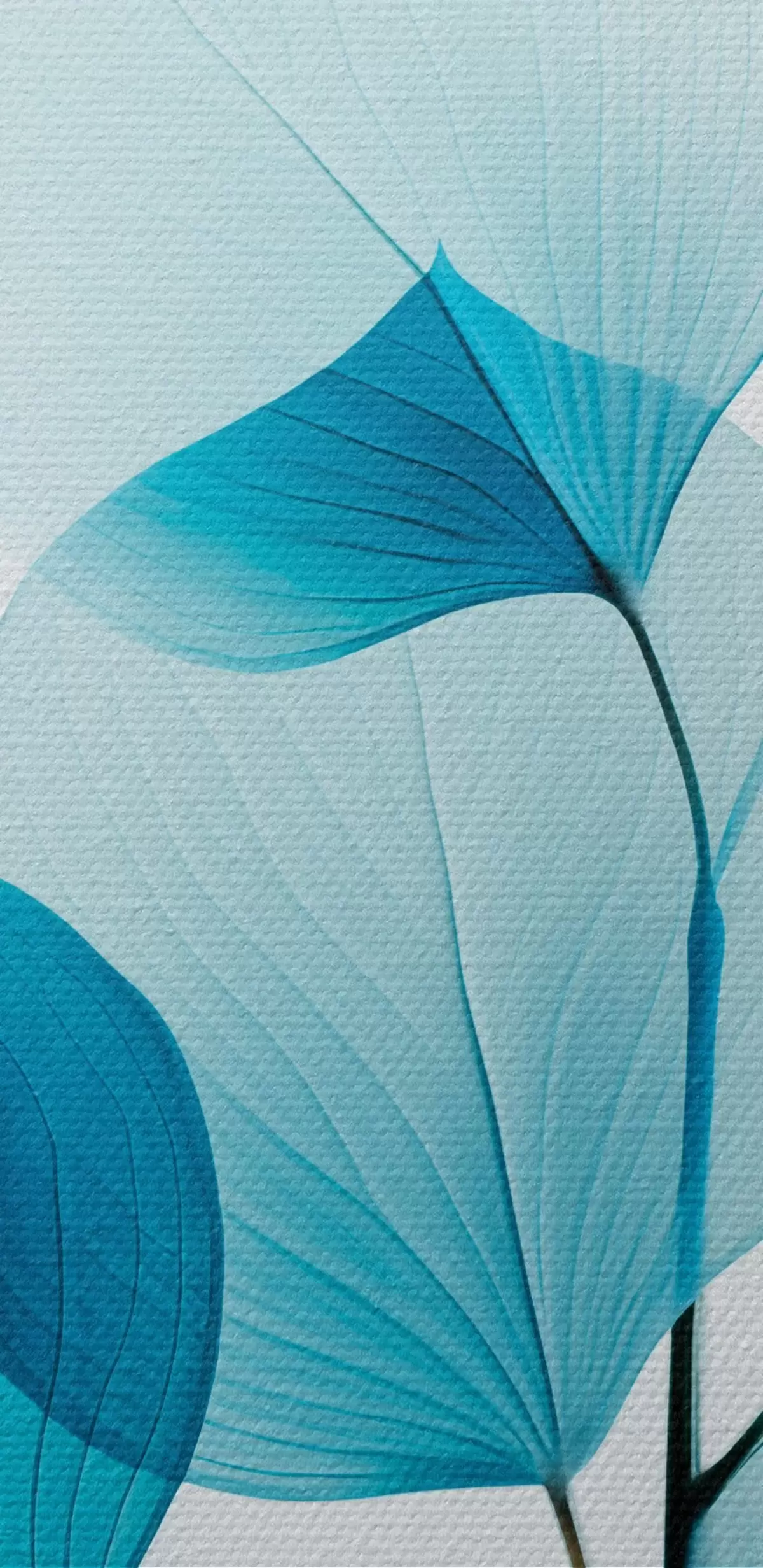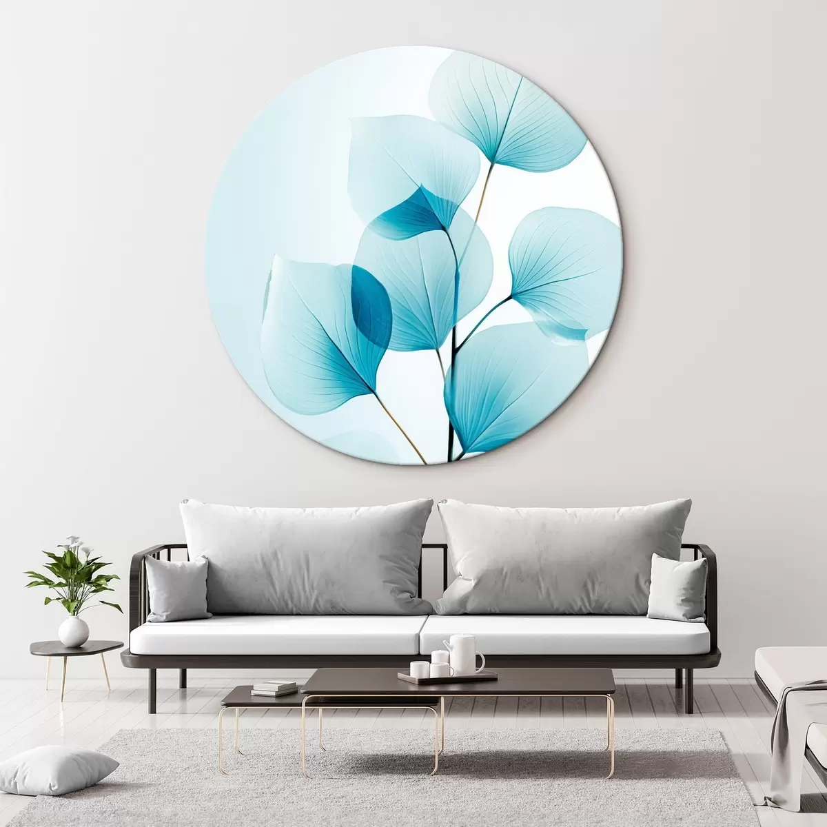Kép Ágak áttetsző kék levelekkel, finom erek láthatóak, könnyed és nyugodt kompozíció, minimalista esztétika Nr r45175