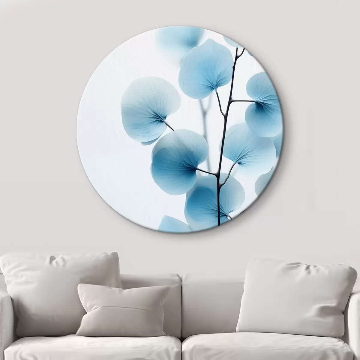 Kép Ágak áttetsző kék levelekkel, finom erek láthatóak, könnyed és nyugodt kompozíció, minimalista esztétika Nr r45176