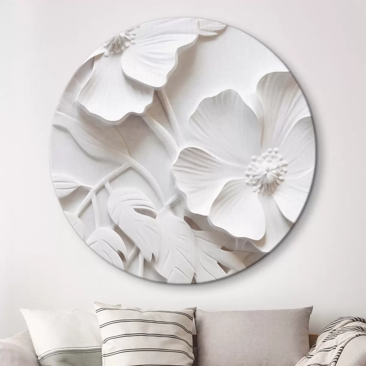 Kép Dekoratív minimalista fehér virágok levelekkel, dombormű utánzat, fehér háttér Nr r45179