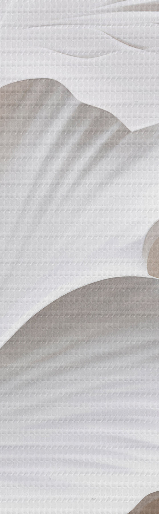 Kép Dekoratív minimalista fehér virágok levelekkel, dombormű utánzat, fehér háttér Nr r45180