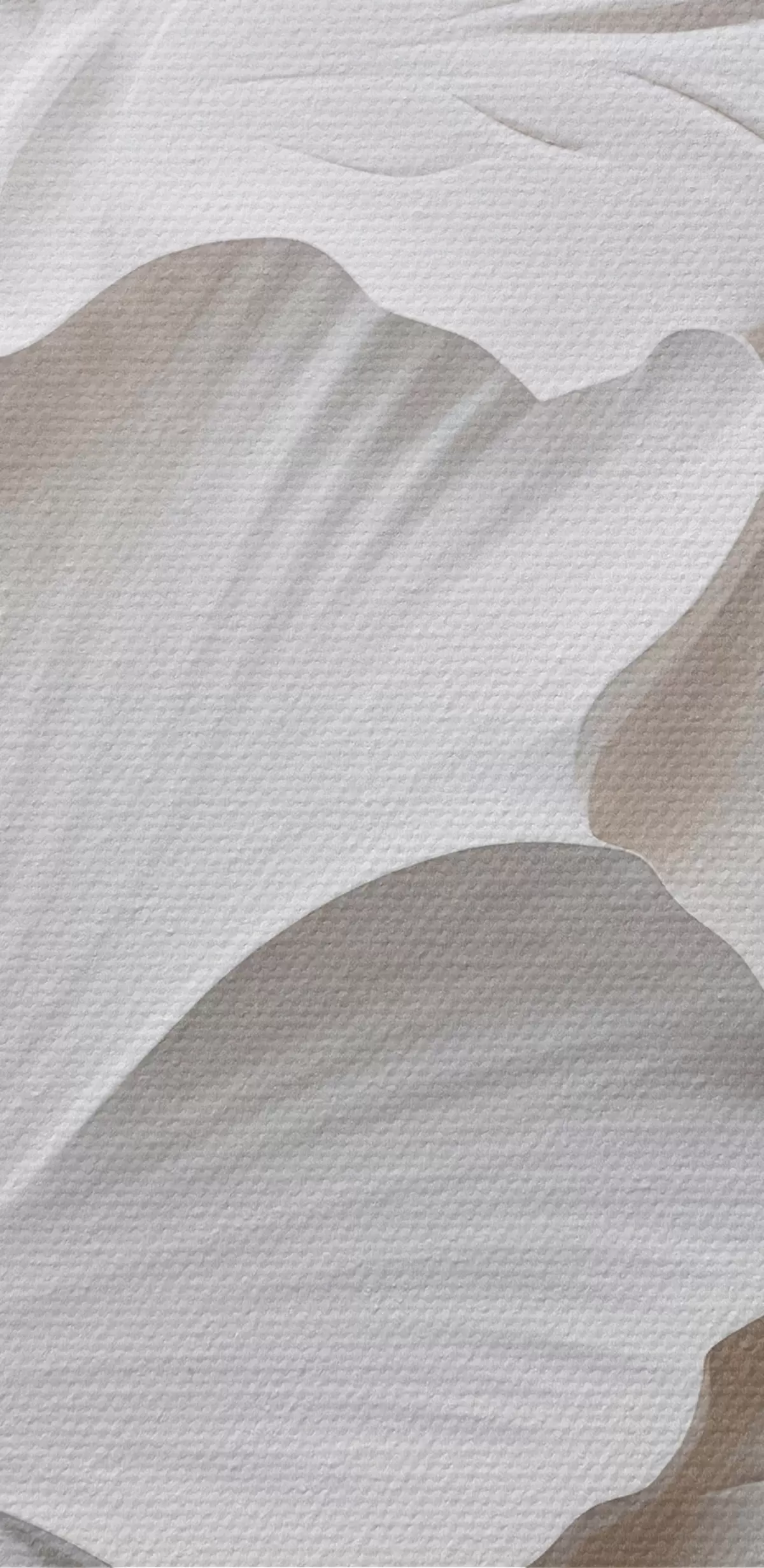 Kép Dekoratív minimalista fehér virágok levelekkel, dombormű utánzat, fehér háttér Nr r45180