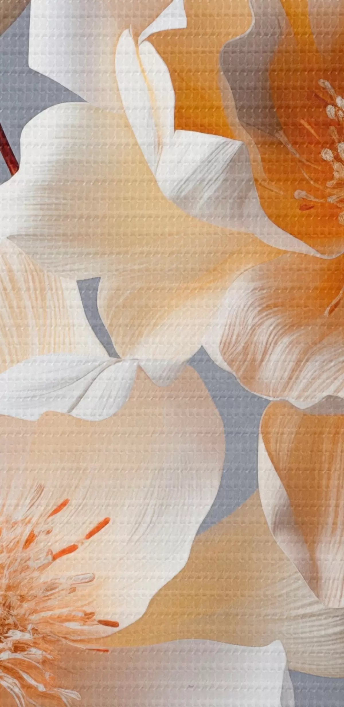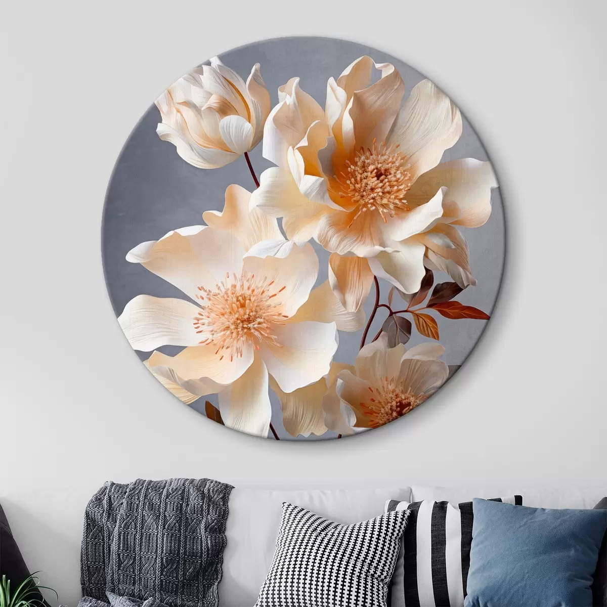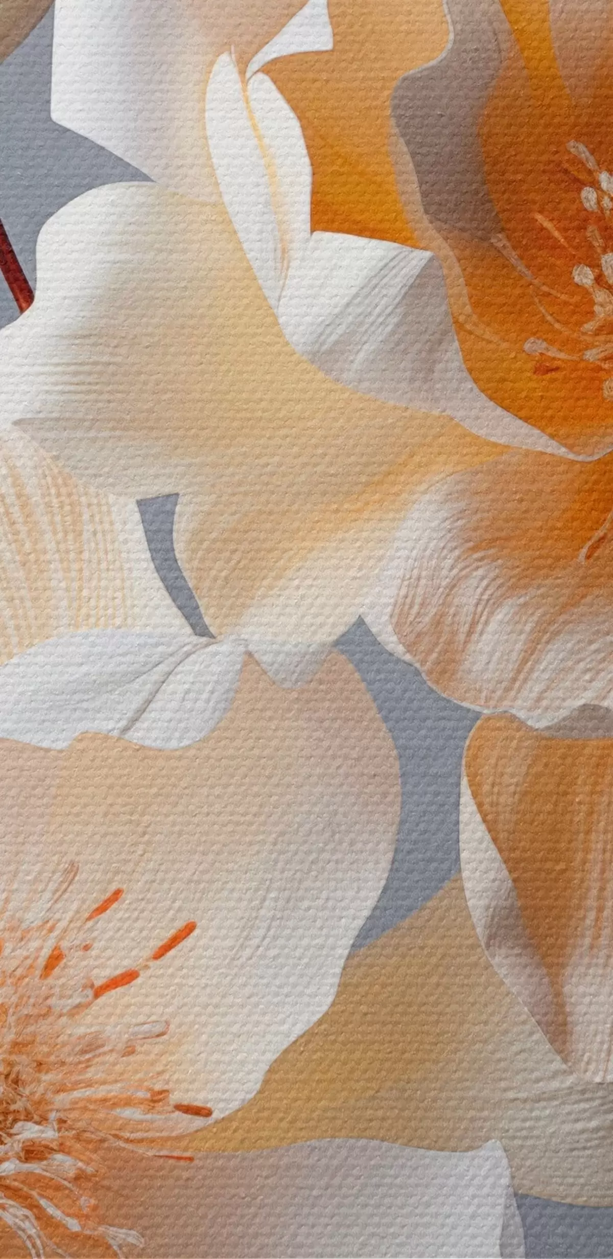 Kép Texturált virágok narancssárga virágzattal és narancssárga levelekkel szürke háttéren, lágy fény, elegáns, részletes, valósághű Nr r45181